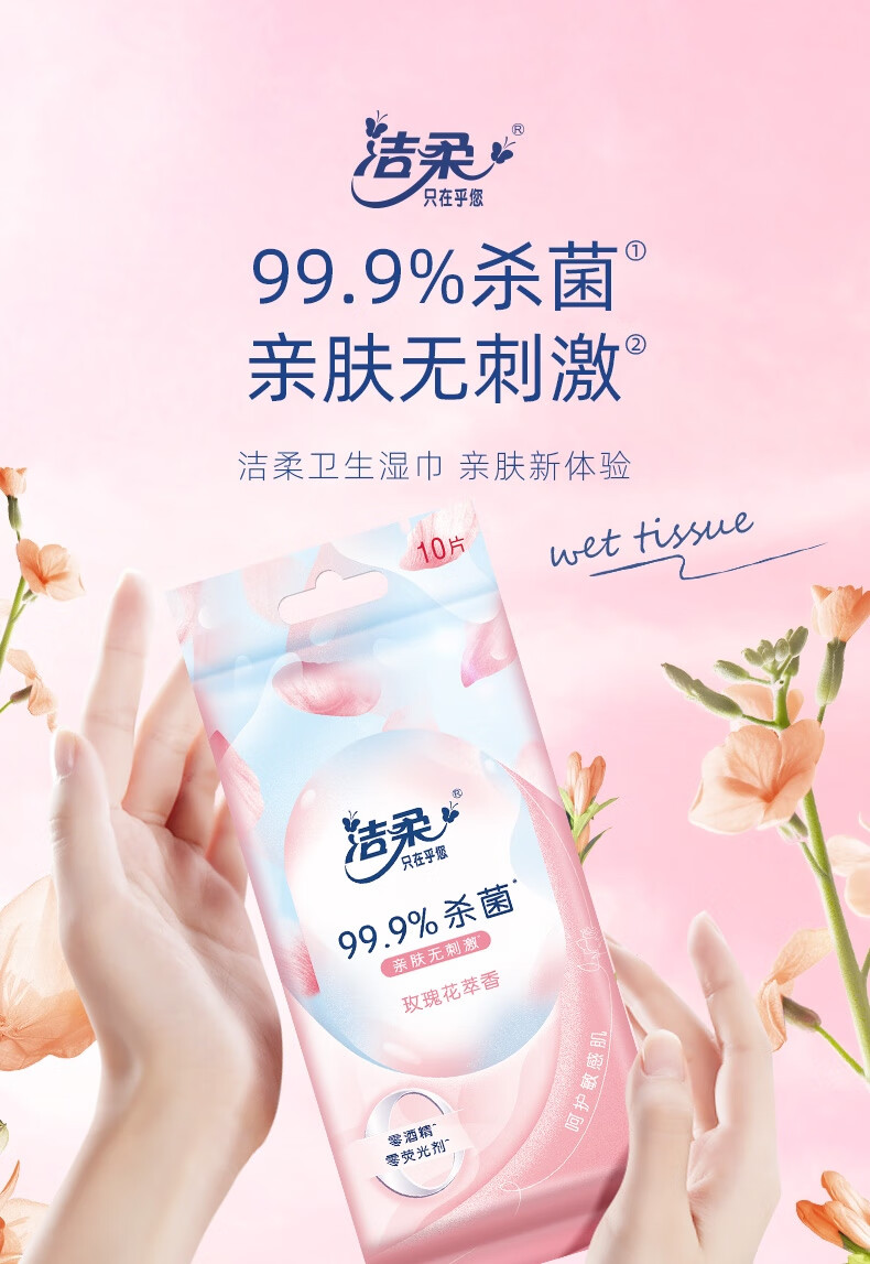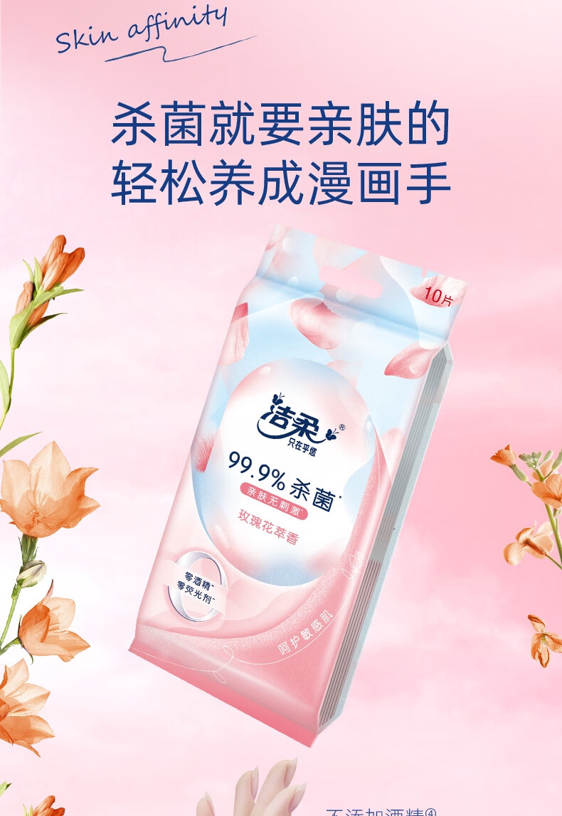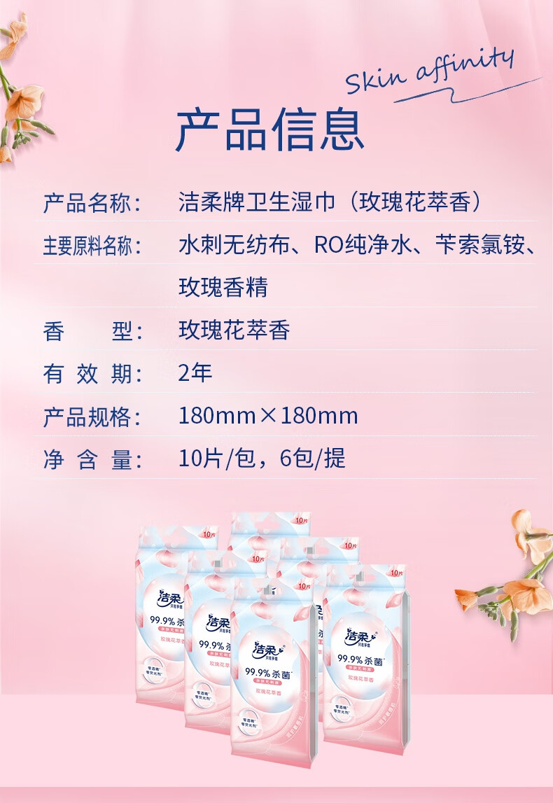 洁柔卫生湿巾 玫瑰花萃香 10片独立装 6包装 JS004-06E