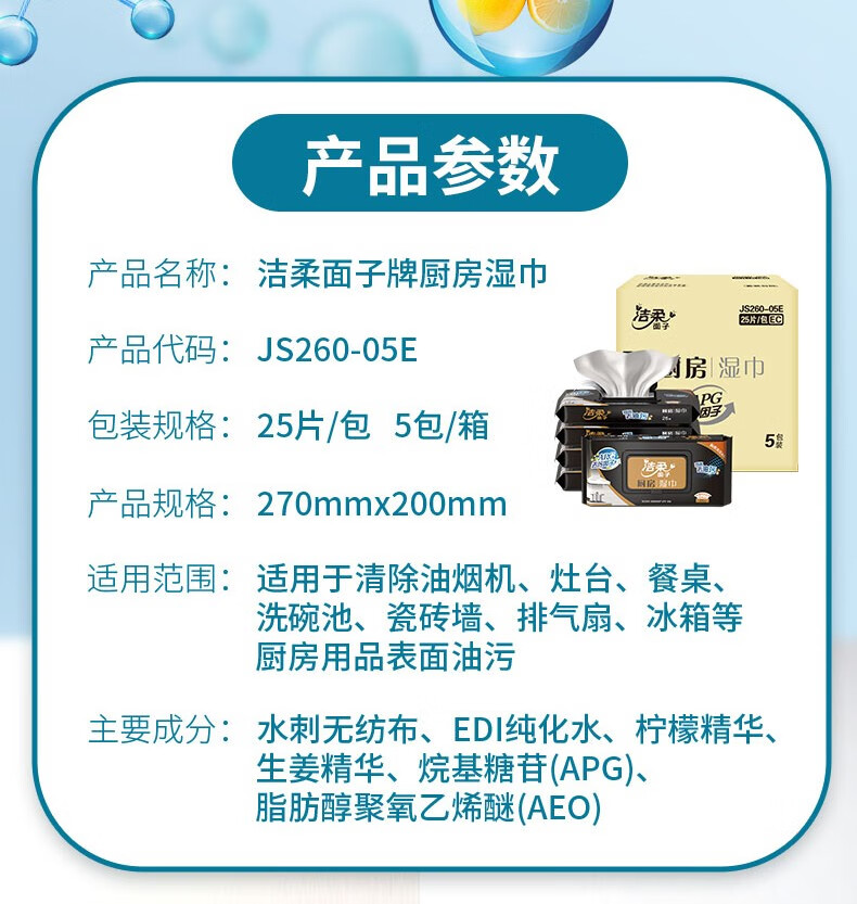 洁柔面子厨房湿巾25片非独立装 5包装 JS260-05E