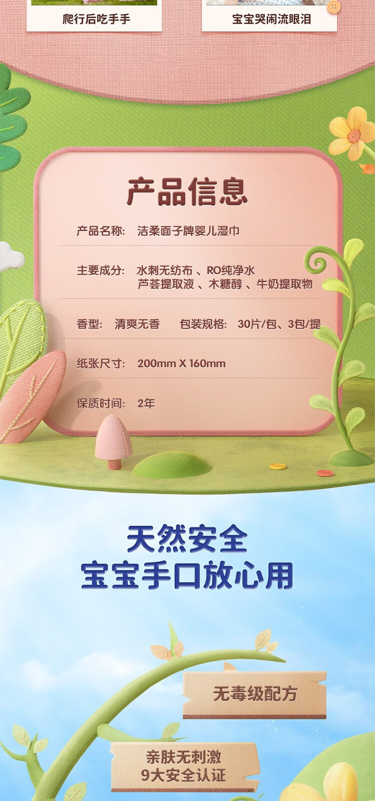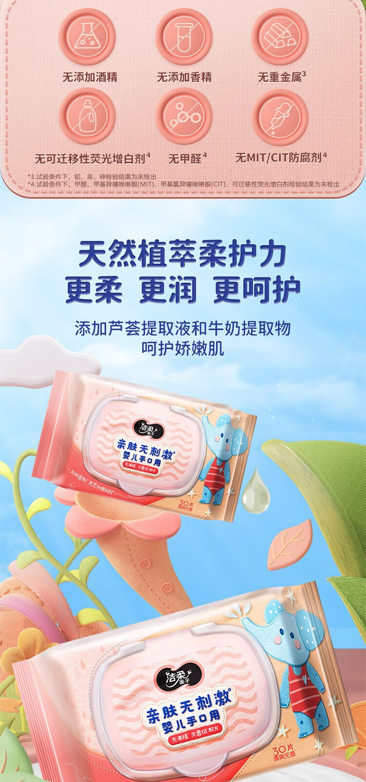 洁柔面子婴儿湿巾30片非独立装 3包装 JS015-03E