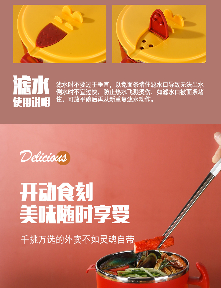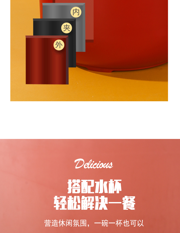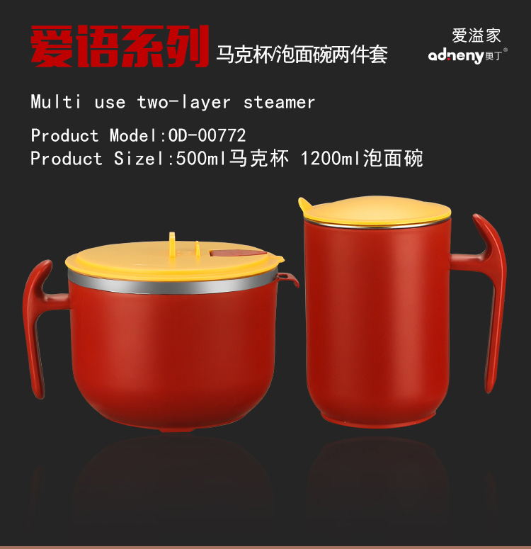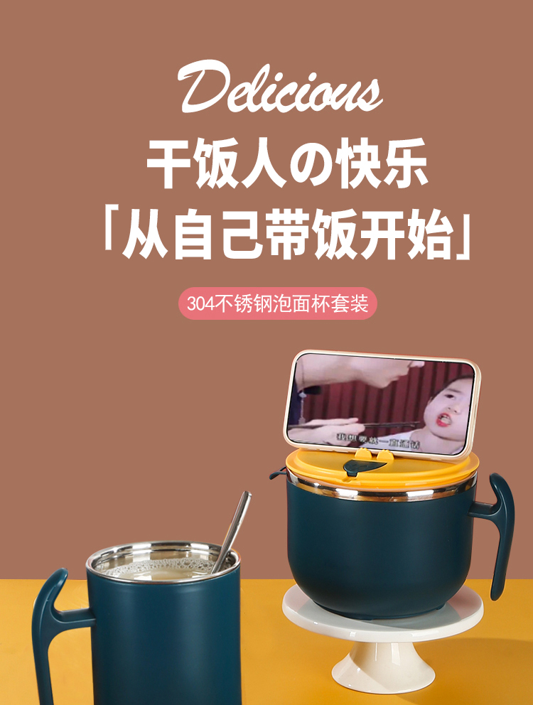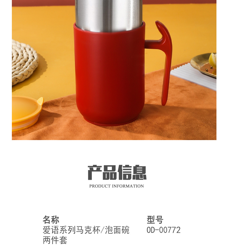 Adneny 马克杯/泡面碗两件套 不锈钢内胆 食品级304 OD-00772