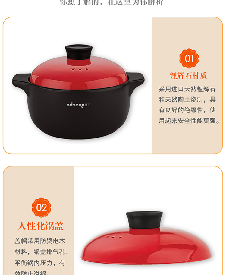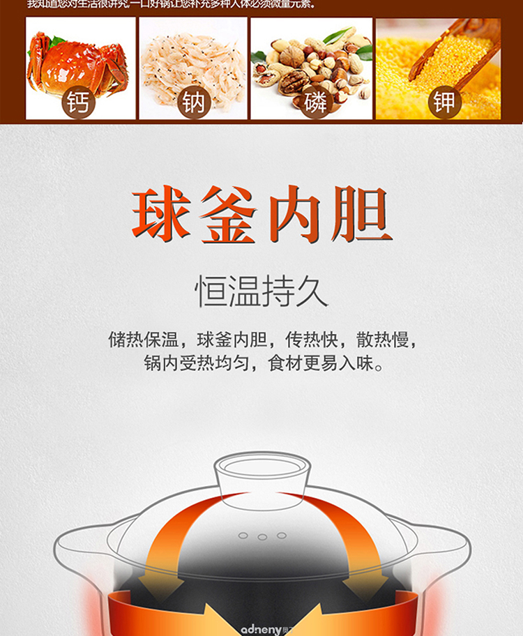 Adneny 多用养生煲3L 耐热陶土 B-01