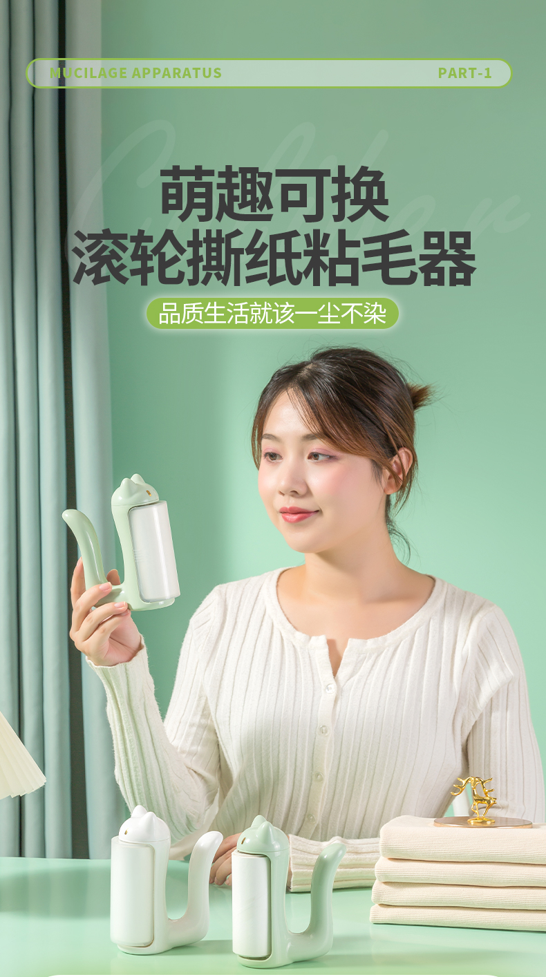 绿色猫咪款-1手柄+5卷纸(共300撕)