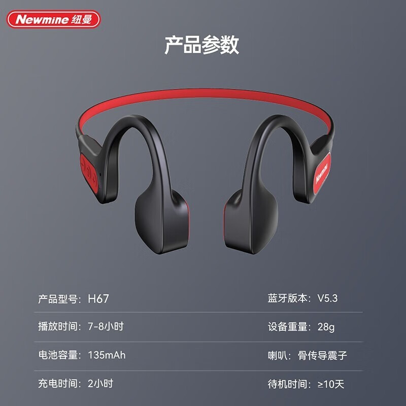 纽曼(Newmine)骨传导蓝牙运动骨传导头戴耳机 H67