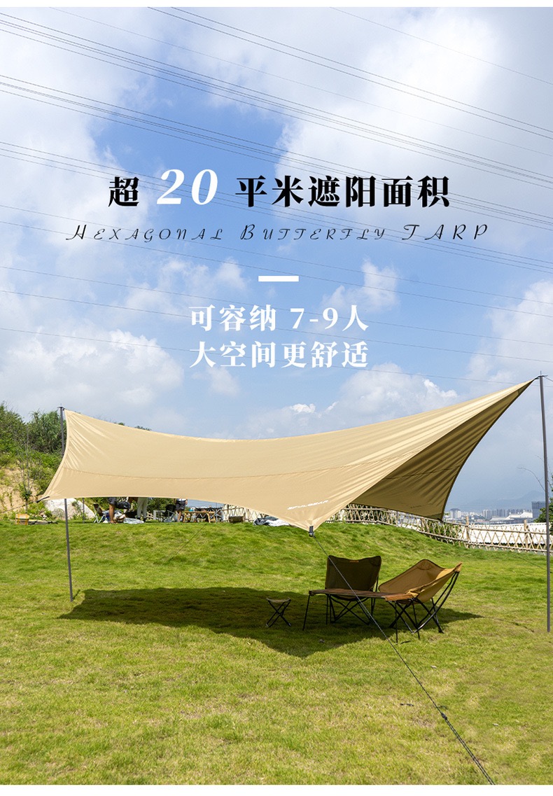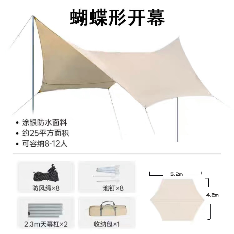 艾瑞迪蝶形天幕帐篷野营野炊野餐防雨防晒遮阳布棚便携凉棚Q-022