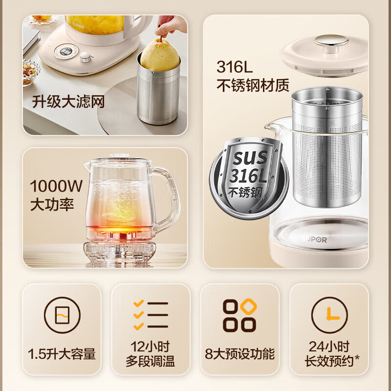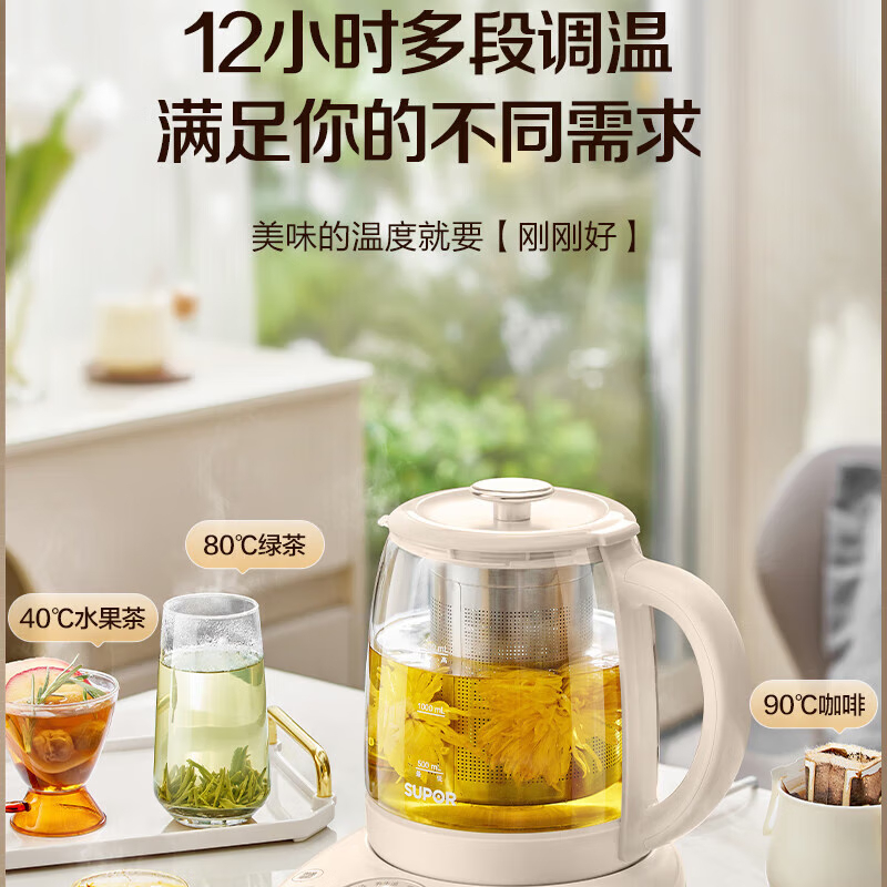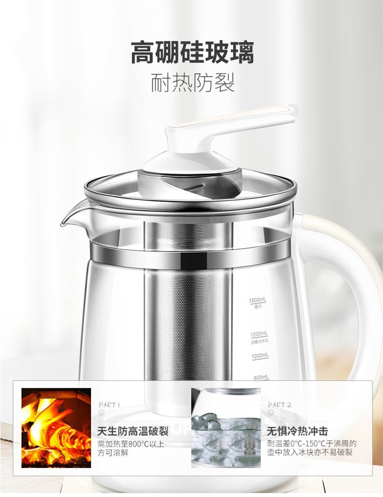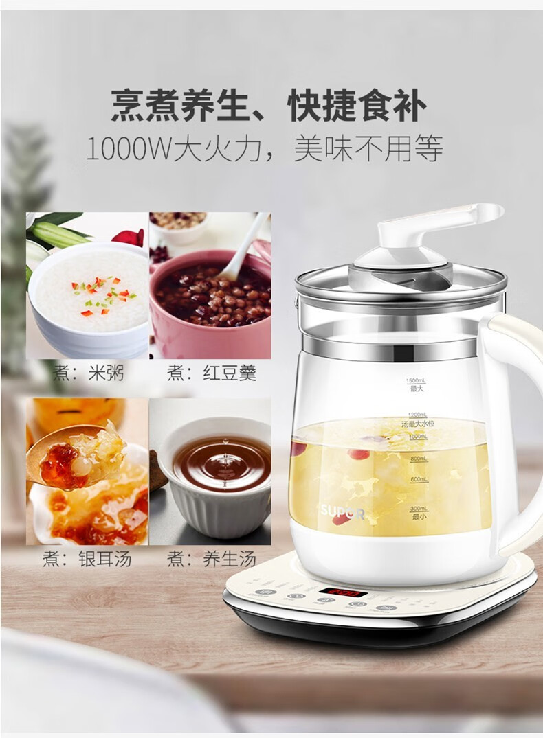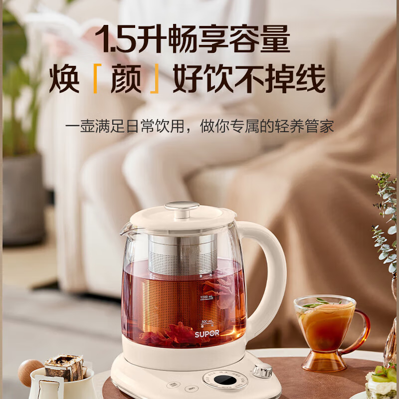 苏泊尔(SUPOR)养生壶煮茶器加厚玻璃电水壶烧水壶电热水壶智能煮茶壶 SW-15Y28 【1.5升】