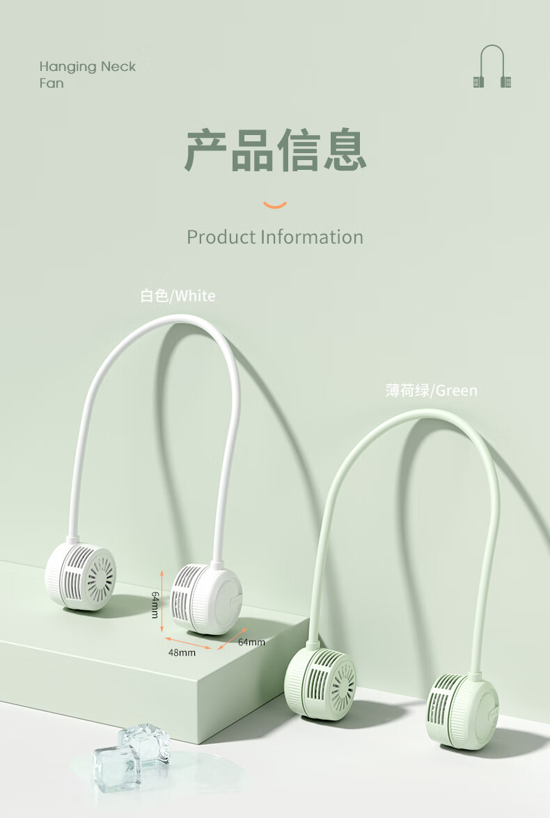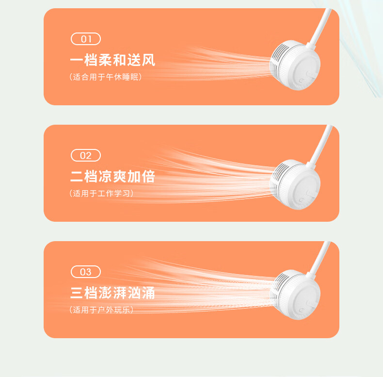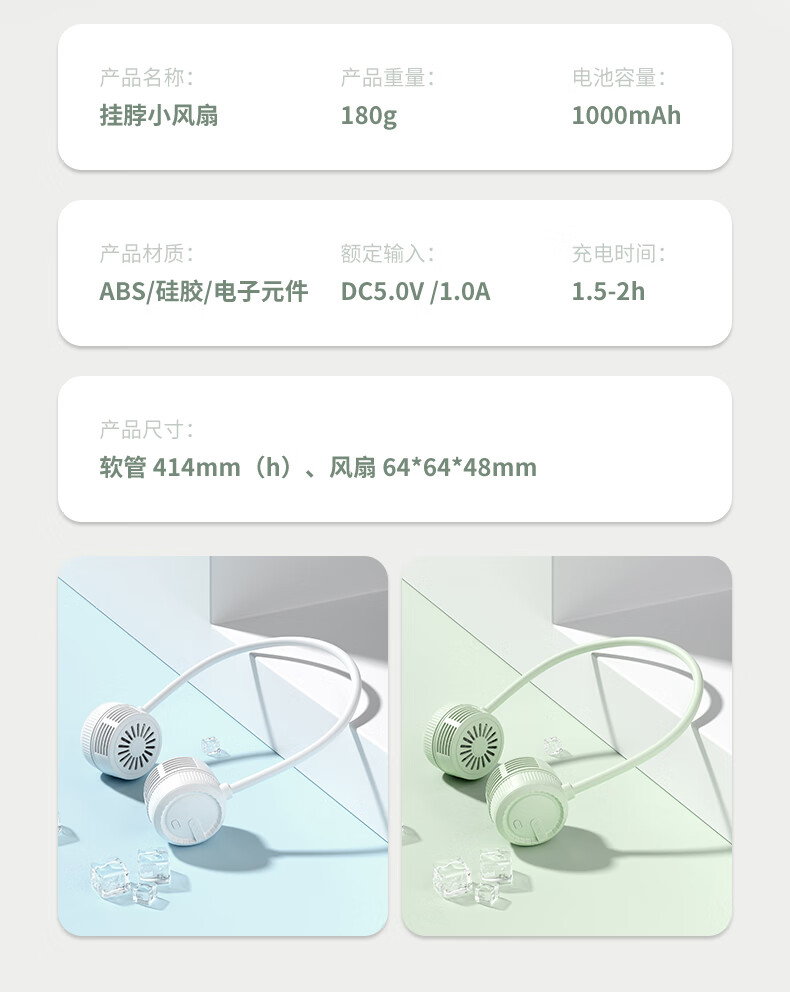 软管尺寸:414mm 风扇尺寸:64×64×48mm 输入电压:DC5V 产品重量:180g 风速档位:3