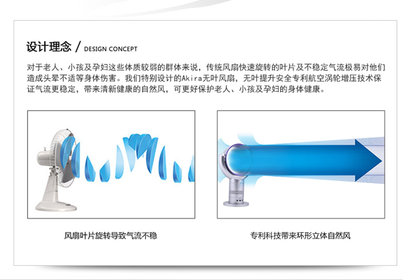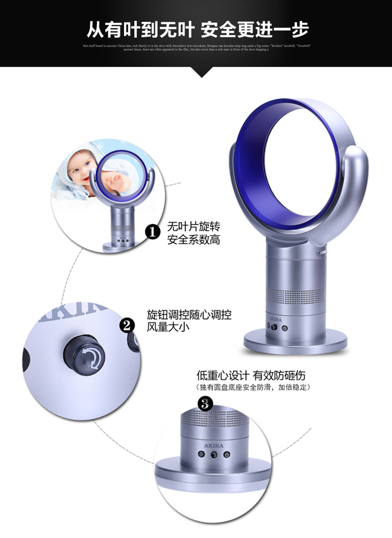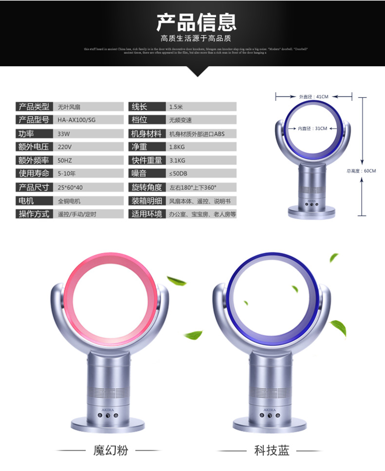 AKIRA爱家乐无叶风扇HA-AX100/SG