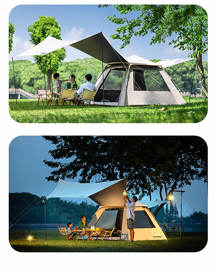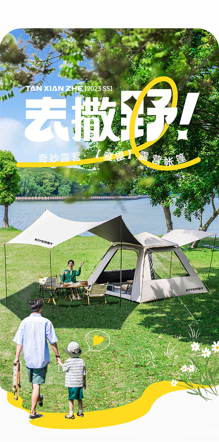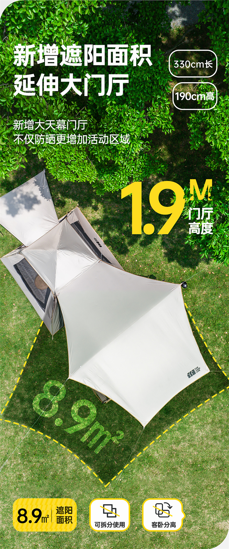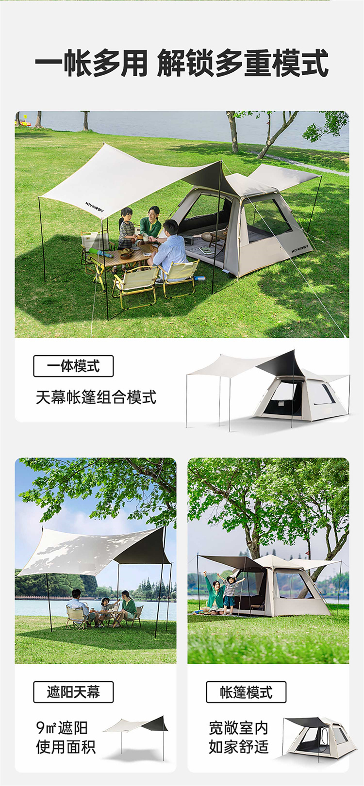 帐篷1个、天幕1个、门厅杆2根、天幕杆2根、地钉12根、防风绳8根