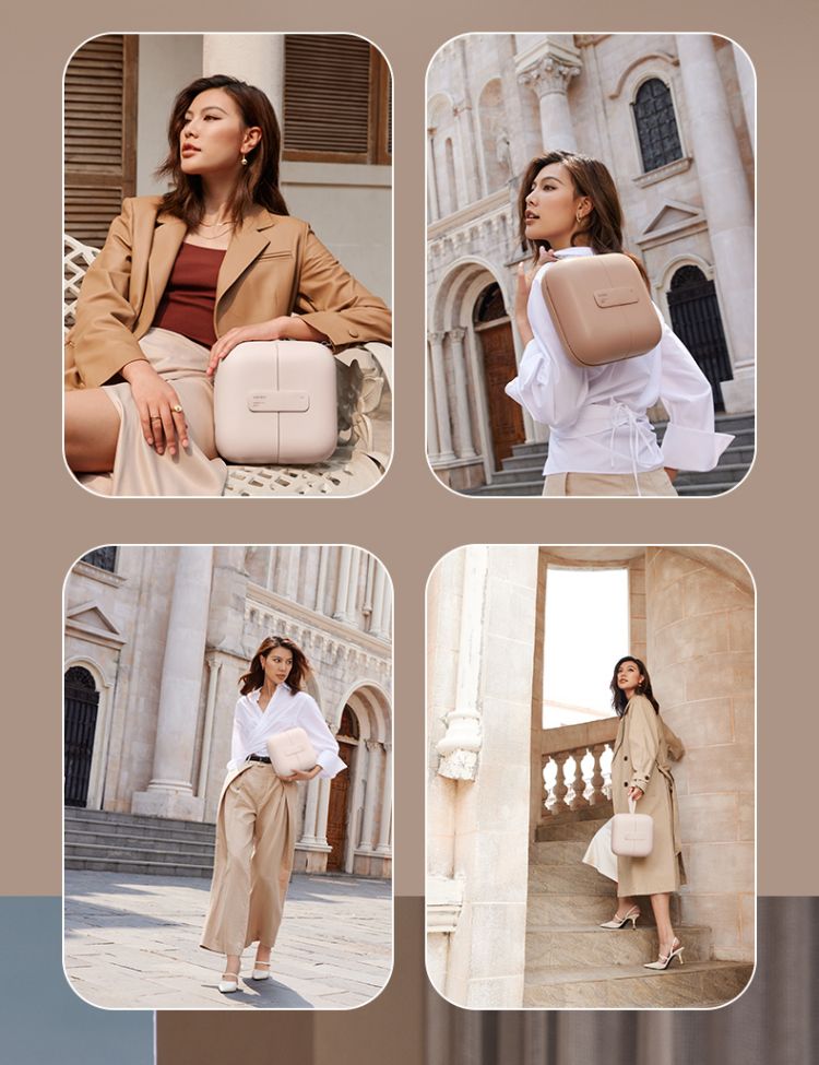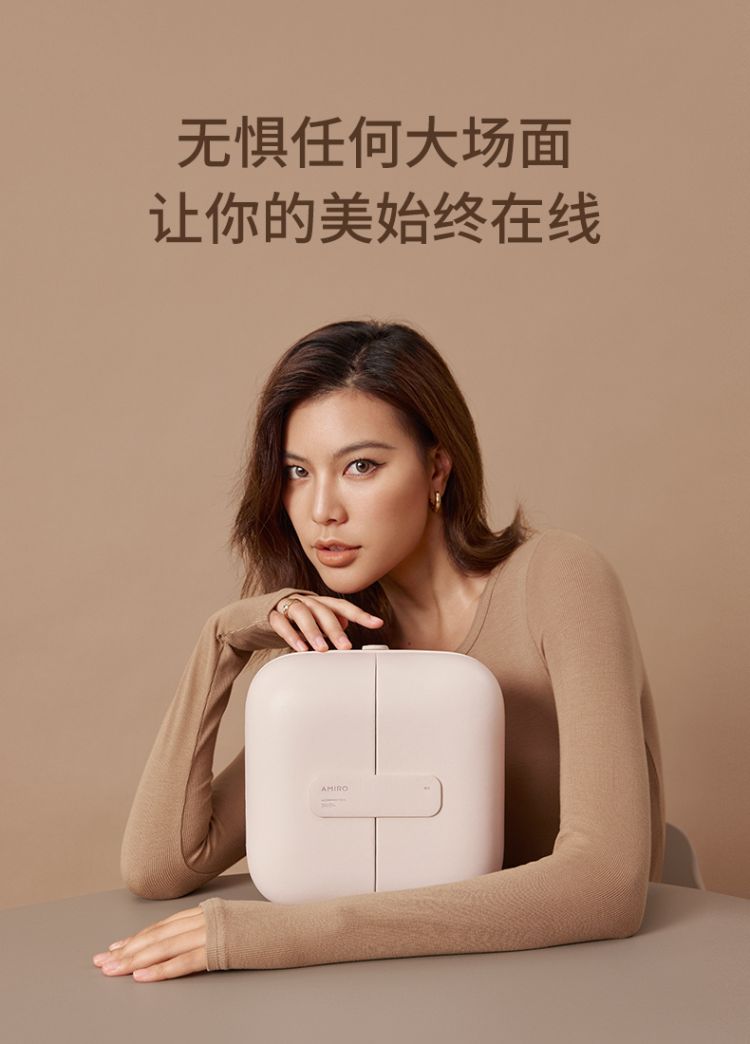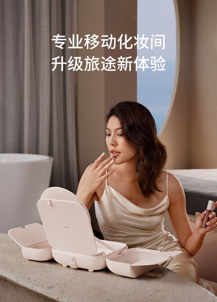 觅光 包包镜化妆镜带灯led日光梳妆美妆镜子补光智能便携包镜一体可折叠生日礼物送女生 豆沙色