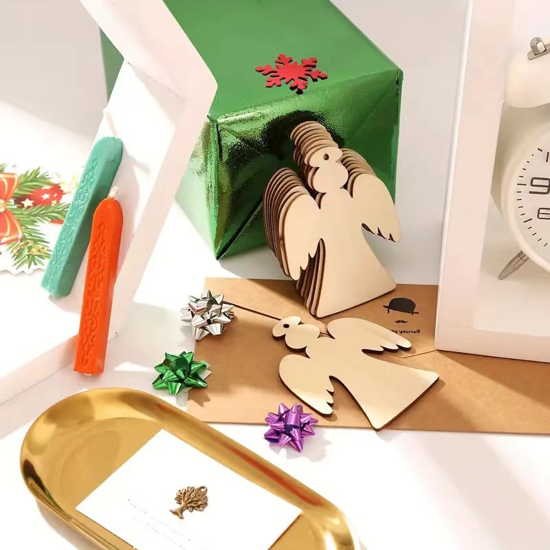木制悬挂天使圣诞节日装饰道具手工diy创意木片工艺品天使挂件