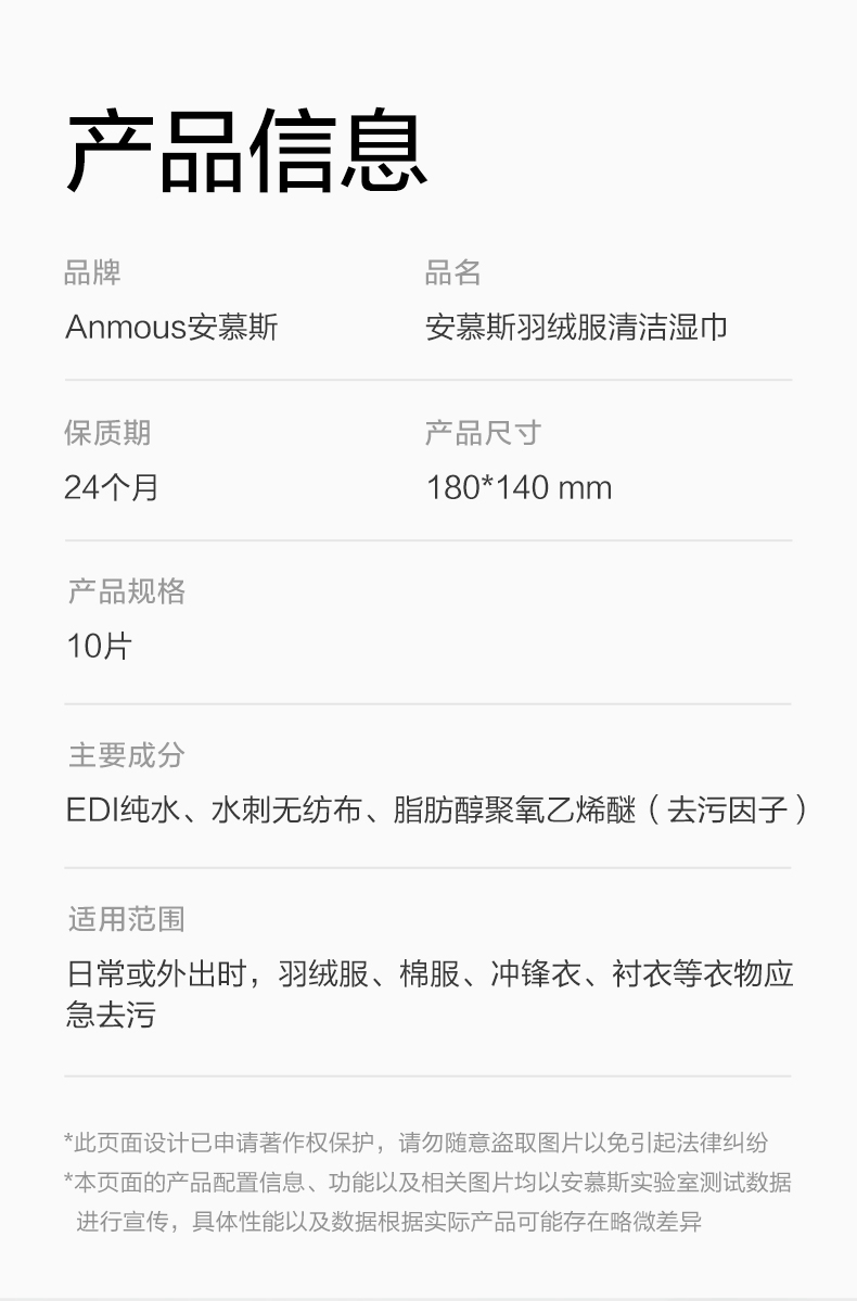 安慕斯羽绒服清洁湿巾