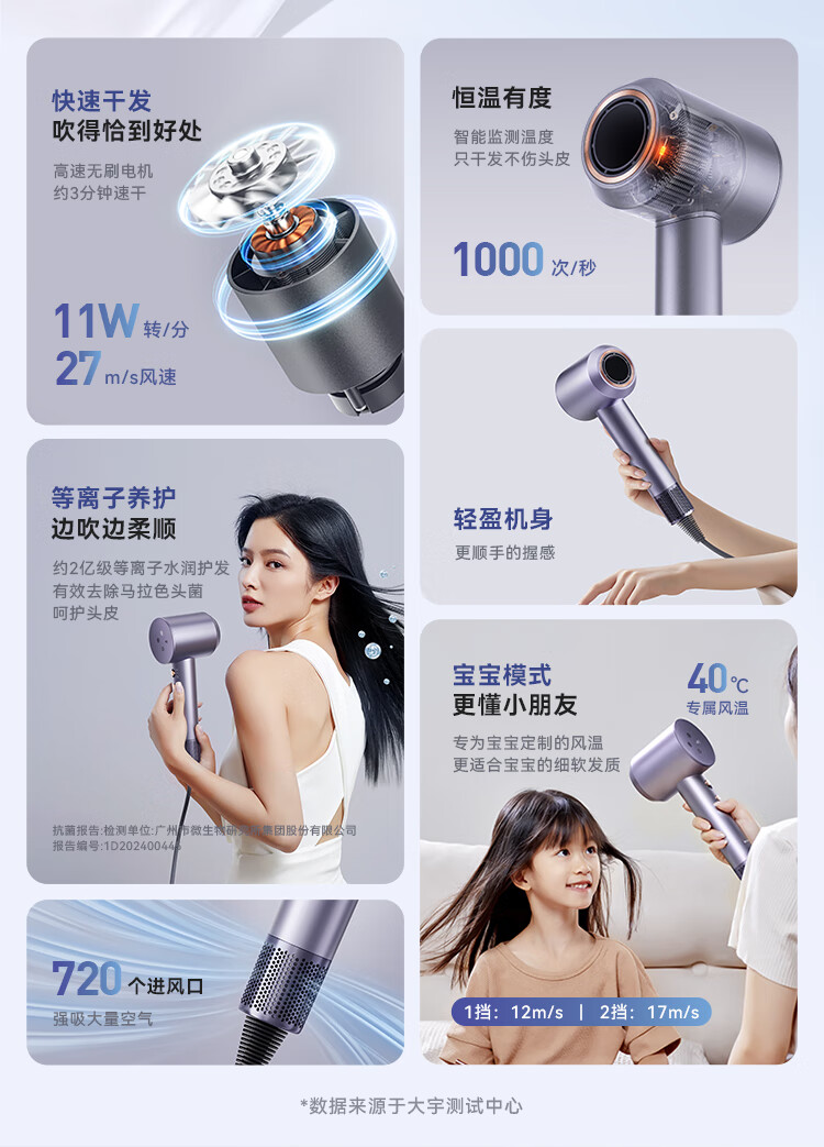 大宇(DAEWOO)恒温高速吹风机离子护发电吹风 HD04 PRO