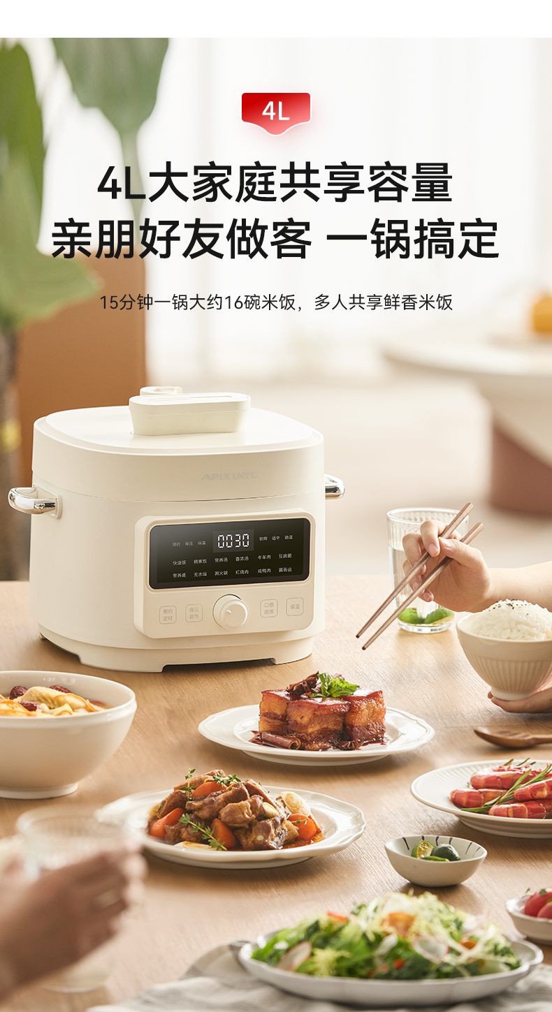 安本素电压力锅家用4L多功能全自动小型电高压锅饭煲一体