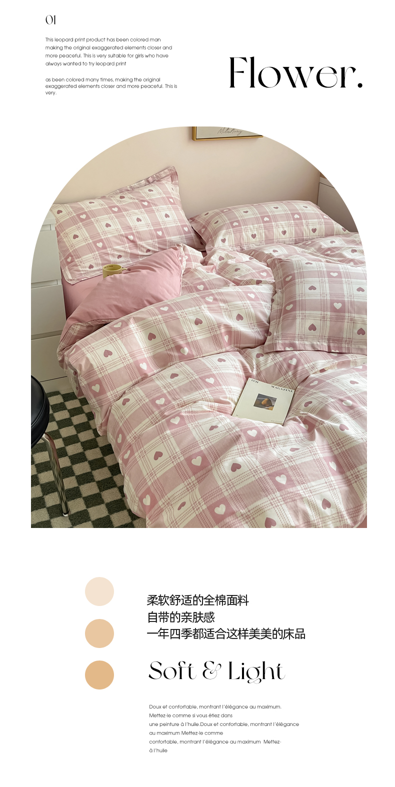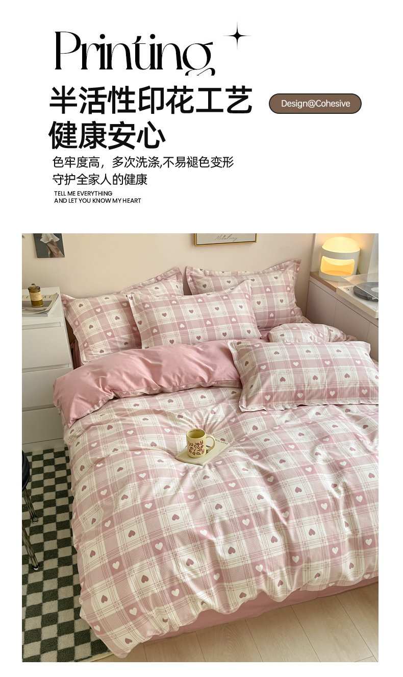 适用0.9米/1.2米/1.5米床(被套160*210cm+床单160*230cm+枕套48*74cm*1)