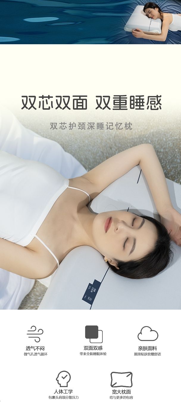 双拼慢回弹记忆枕零压感护颈椎助睡眠黑科技