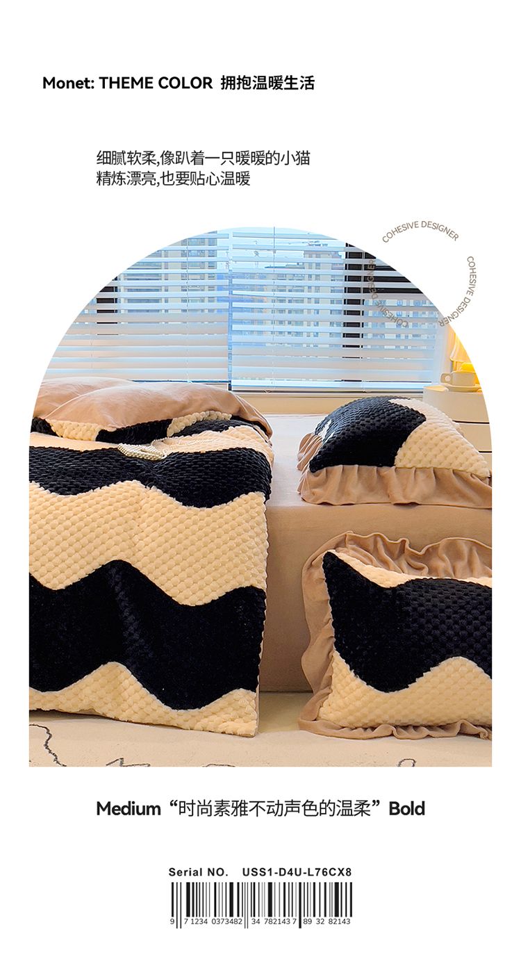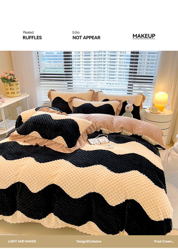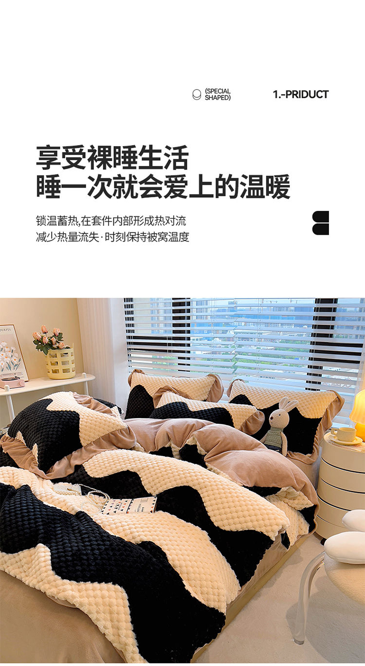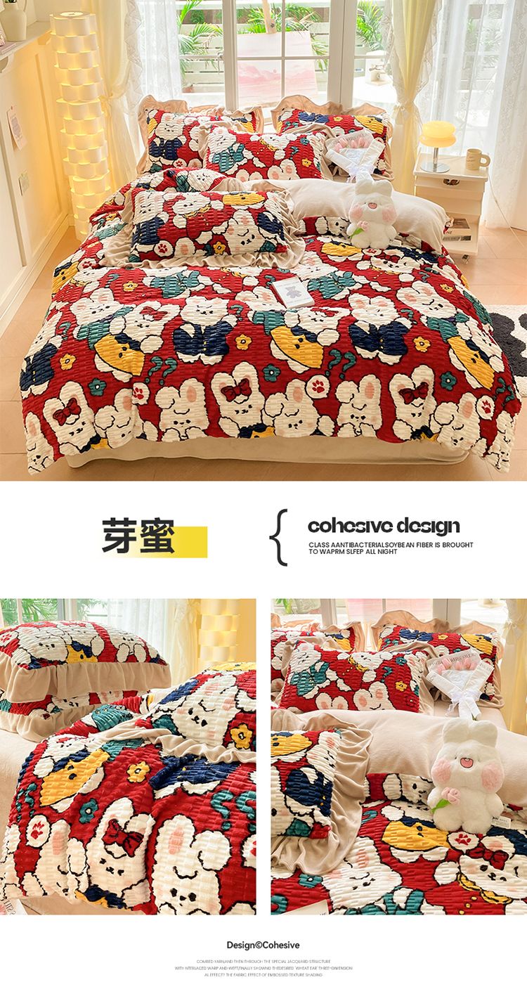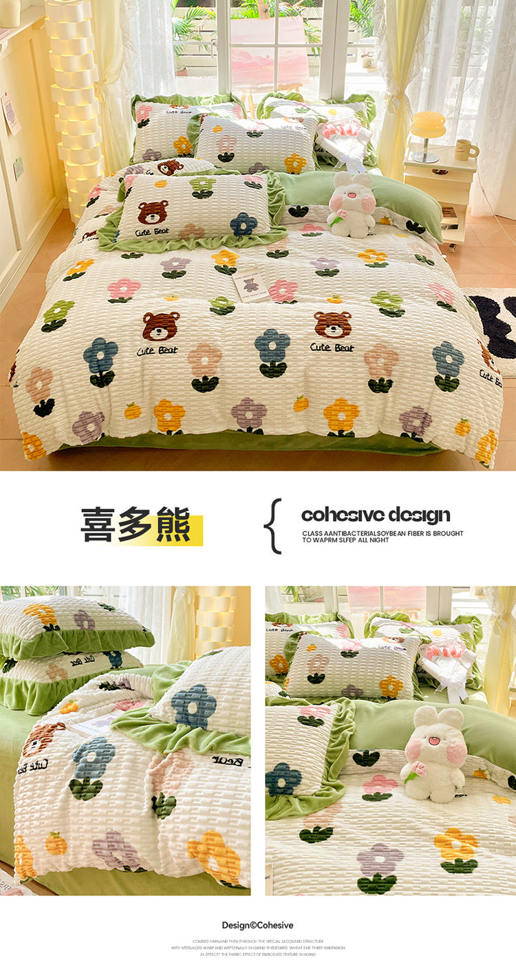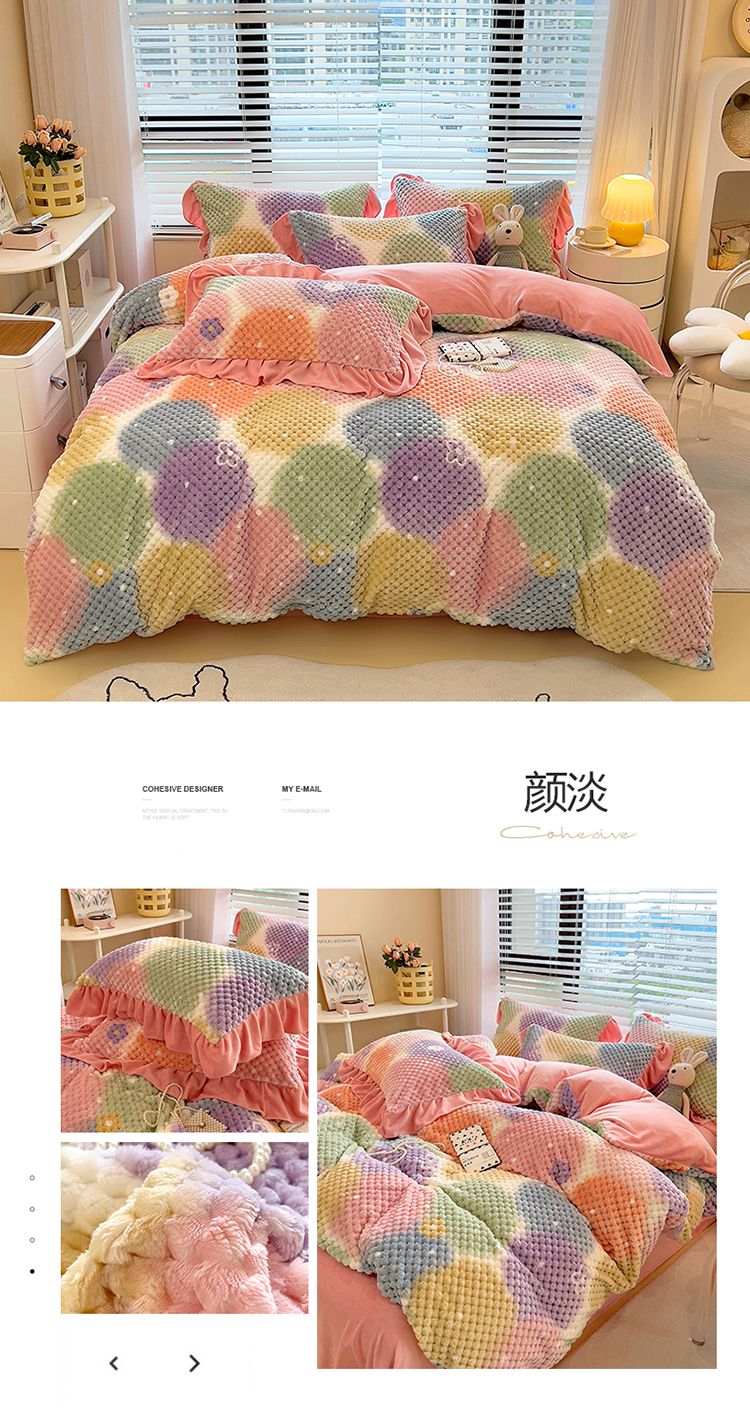 冬季小清新提花豆豆款网红四件套可爱三件套加厚牛奶绒被套单格子