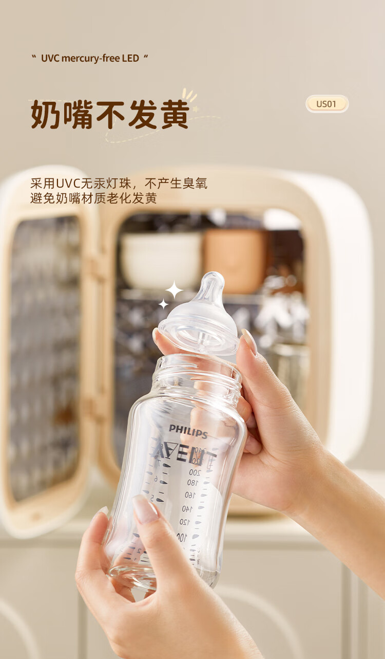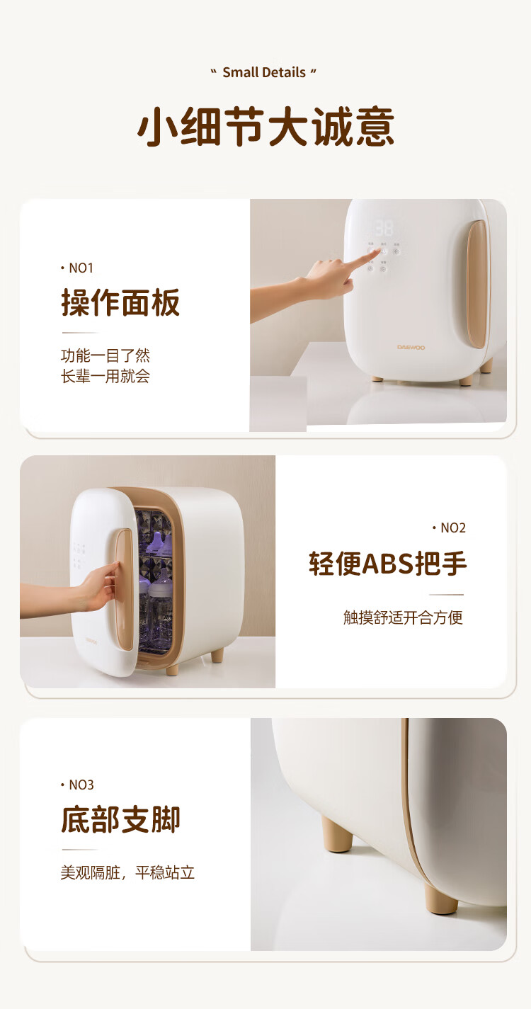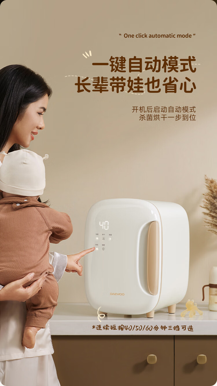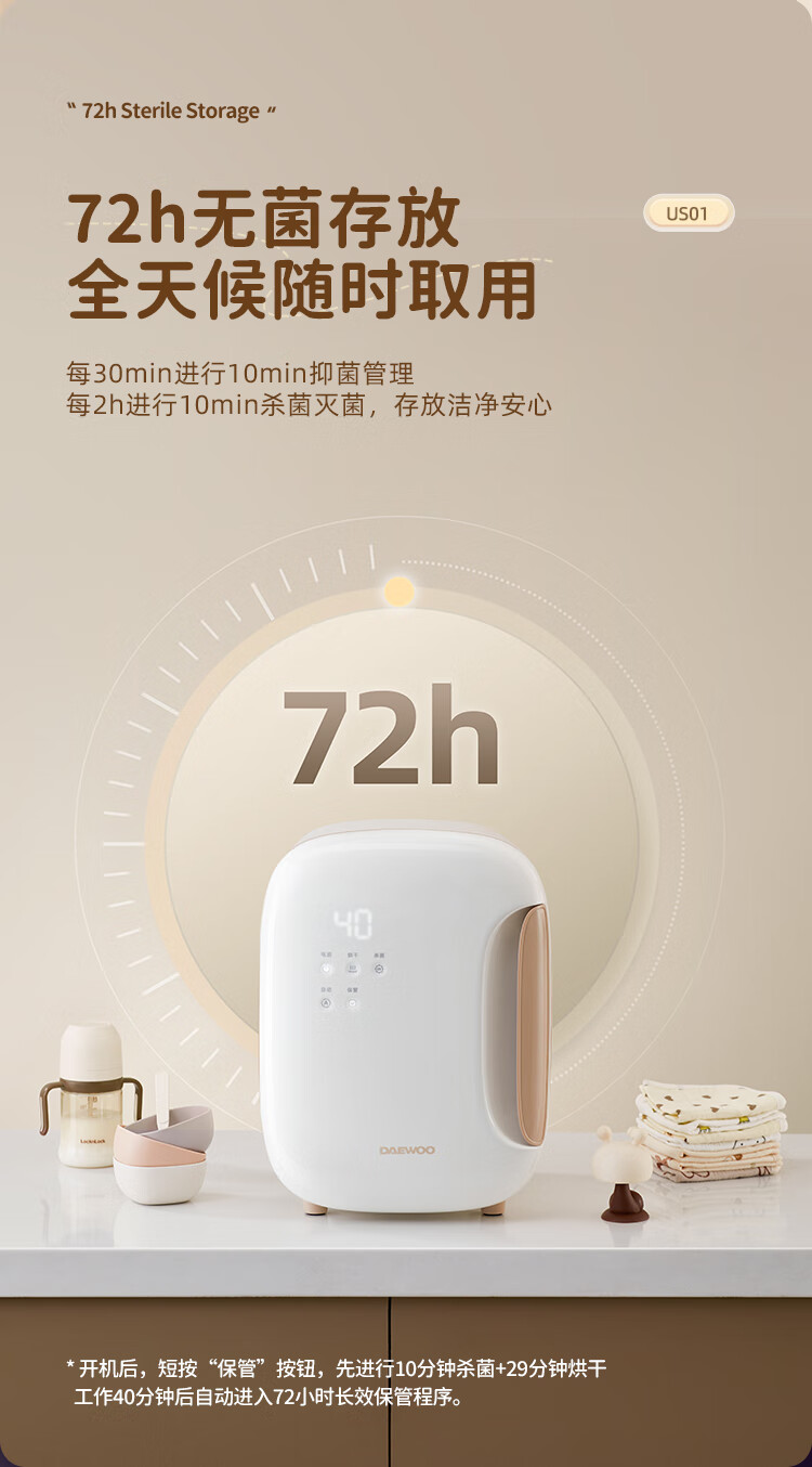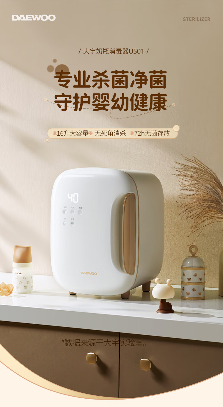 大宇(DAEWOO)无汞灯珠紫外线烘干一体婴儿奶瓶消毒器等离子保洁柜 US01