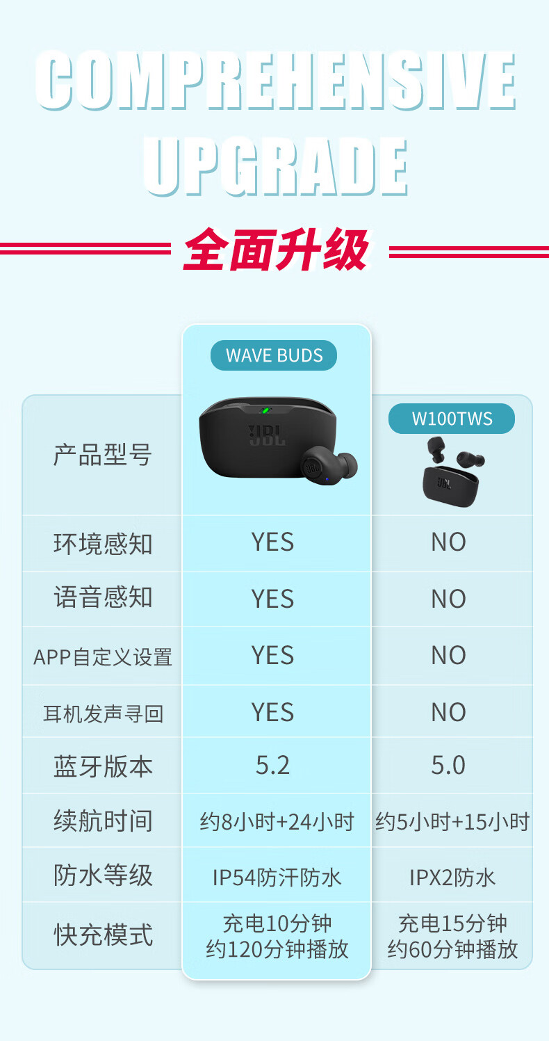 JBL WAVE BUDS 真无线蓝牙耳机入耳式音乐耳机