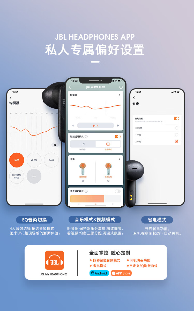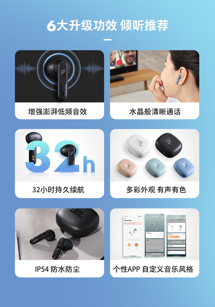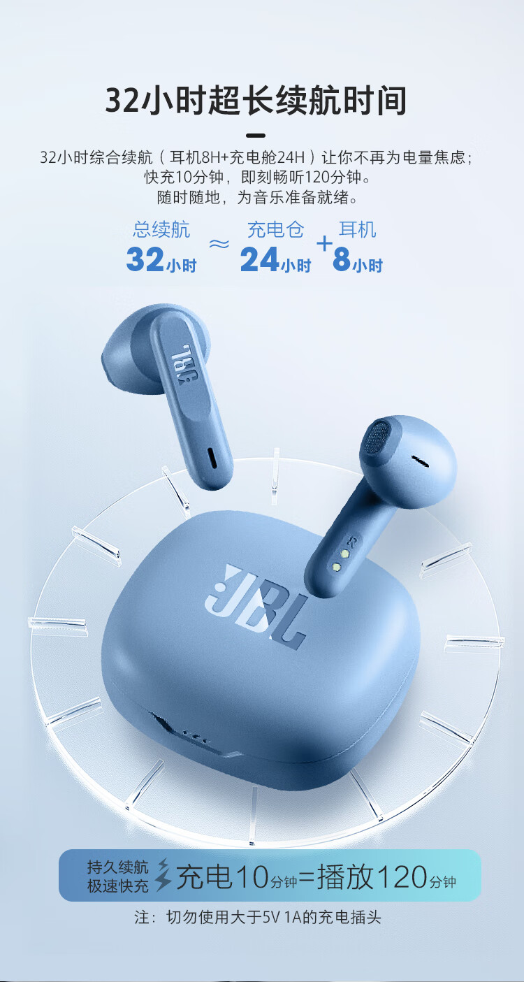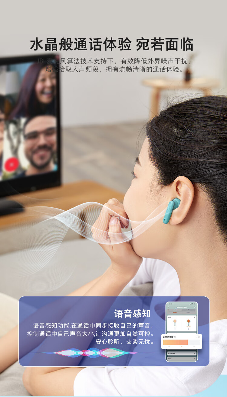 JBL WAVE FLEX 真无线蓝牙耳机 半入耳式音乐耳机 通话降噪运动防汗