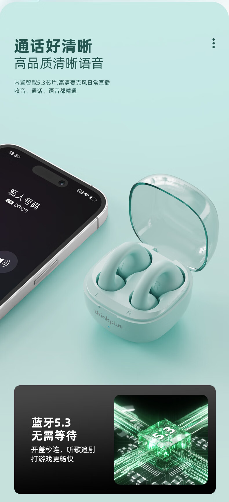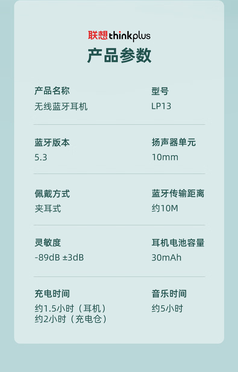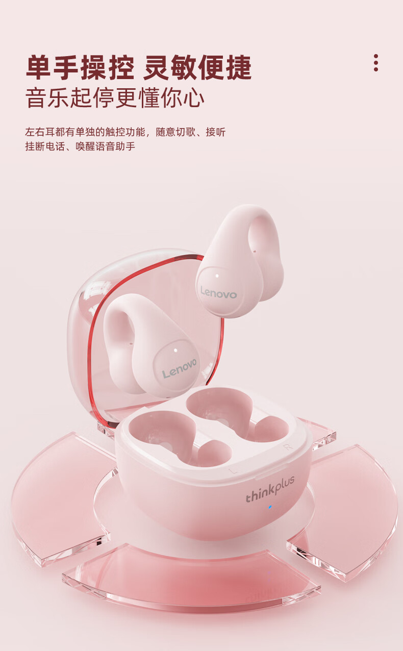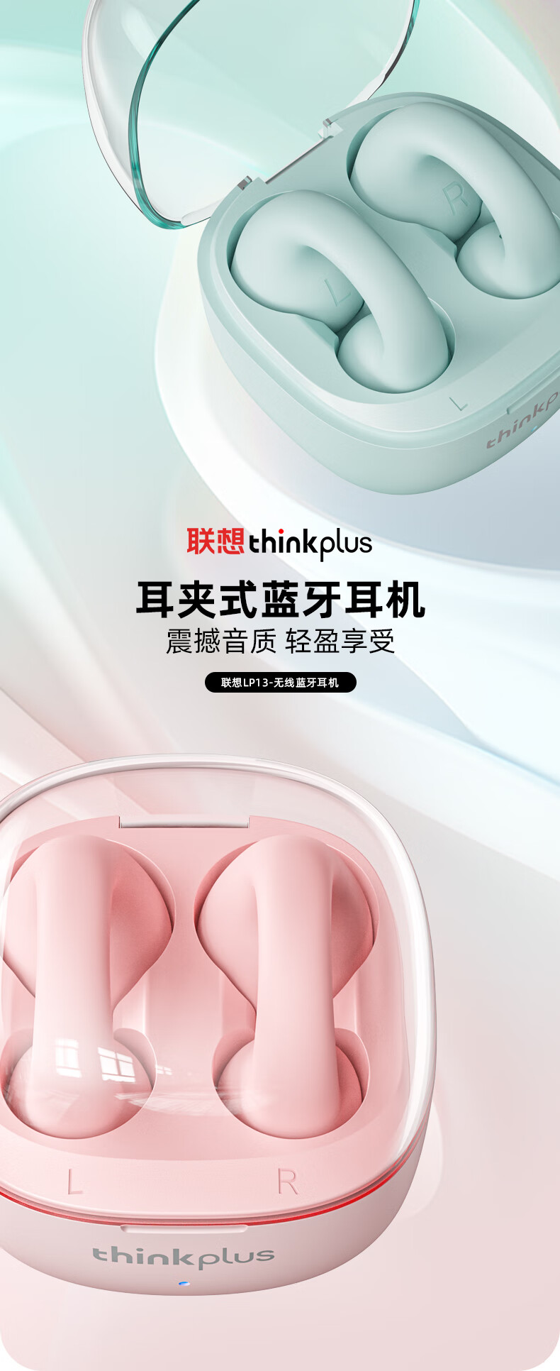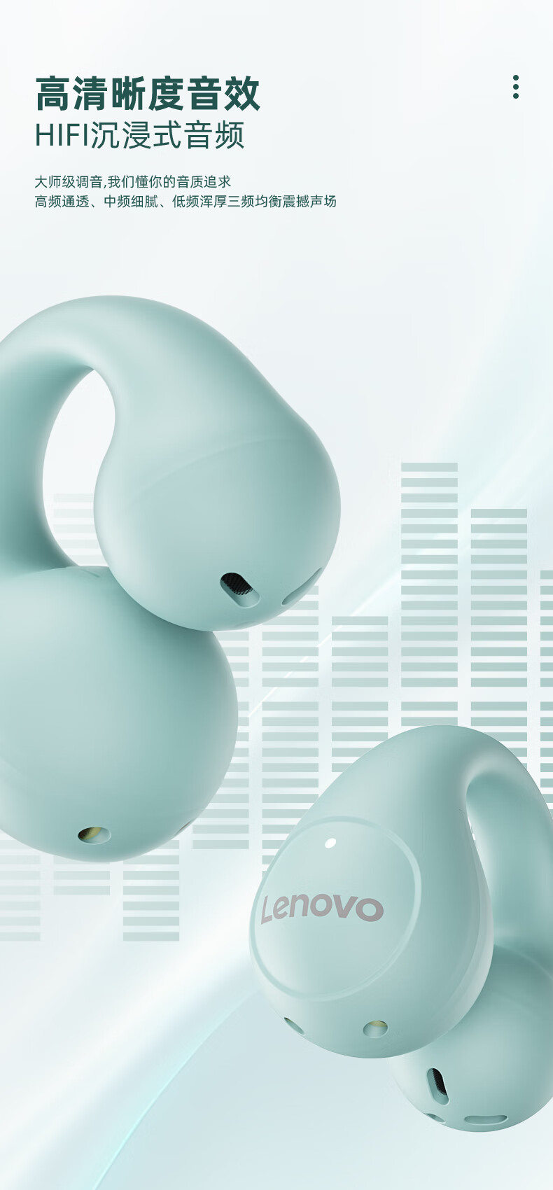 联想(Lenovo)LP13蓝牙耳机真无线耳夹式全新蓝牙5.3超长续航通话降噪HiFi高音质苹果华为安卓手机通用