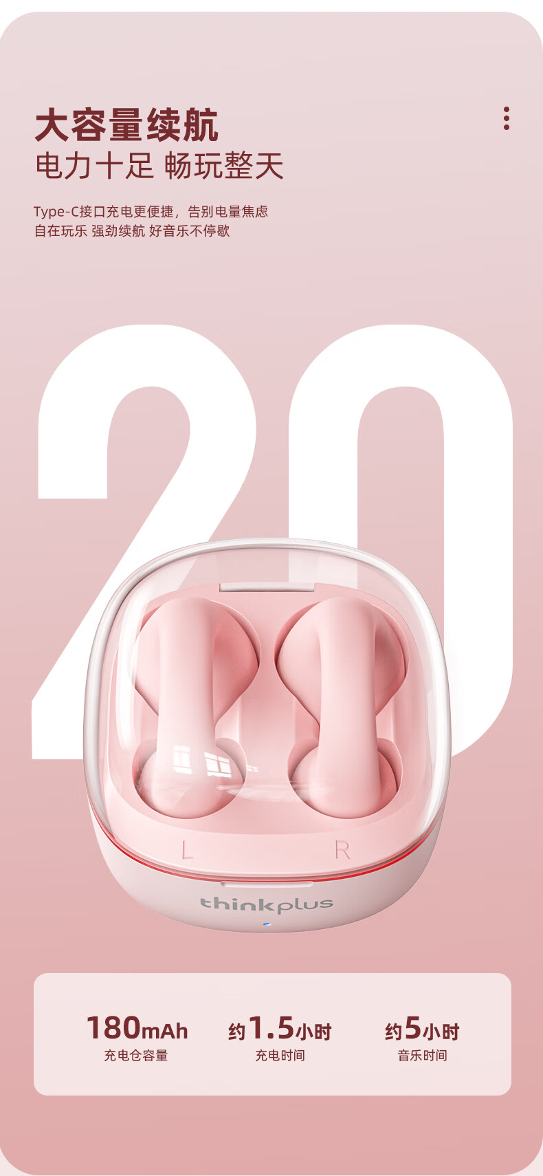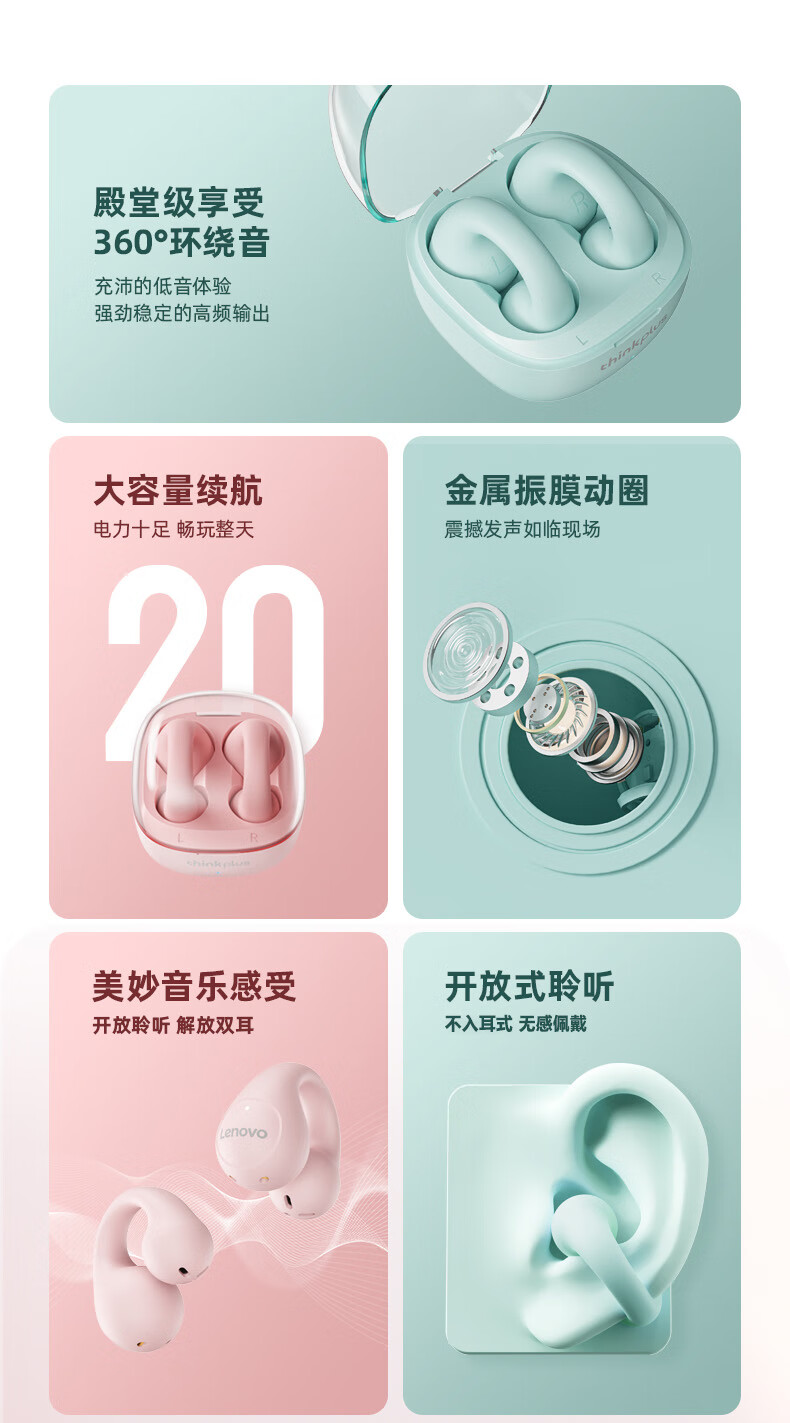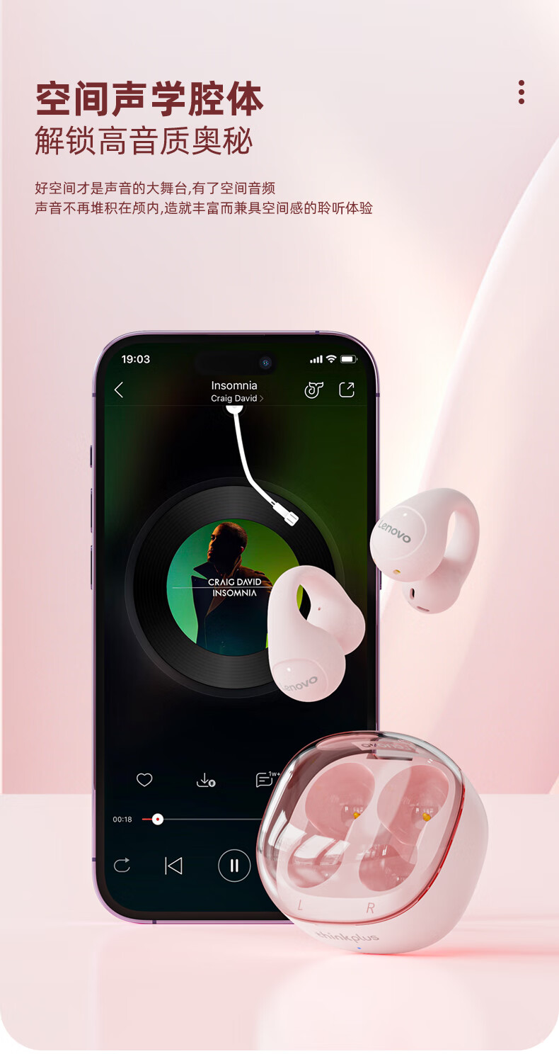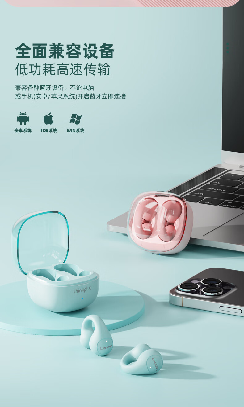 联想(Lenovo)LP13蓝牙耳机真无线耳夹式全新蓝牙5.3超长续航通话降噪HiFi高音质苹果华为安卓手机通用