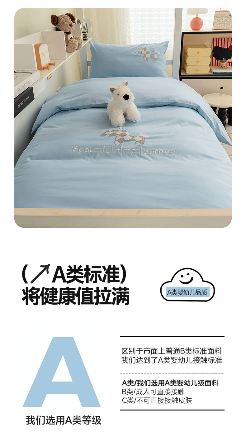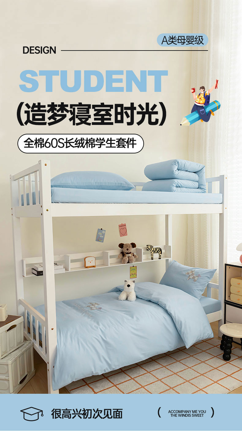 新款纯棉三件套长绒棉全棉纯色刺绣床单被套学生宿舍床大学生