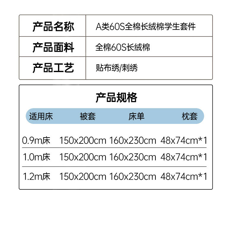 1.2m床单款三件套