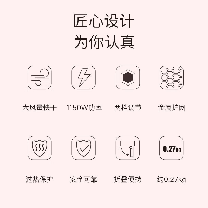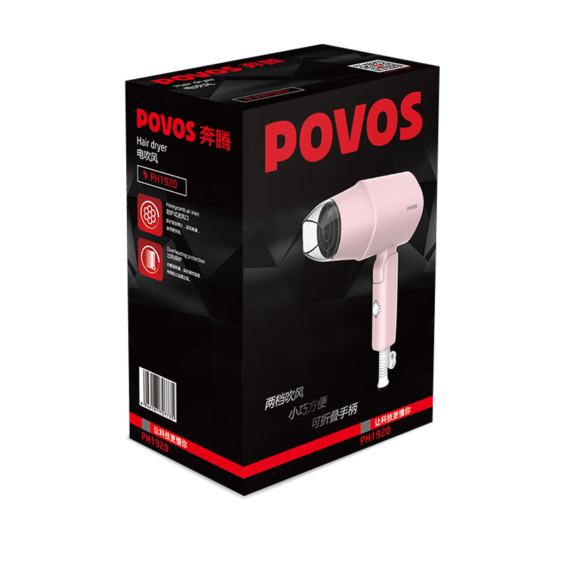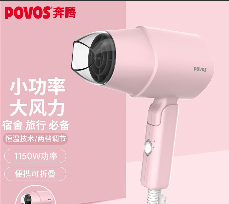 奔腾(POVOS)电吹风机 家用吹风筒 可折叠式迷你便携 1150W功率适用宿舍寝室 PH1920