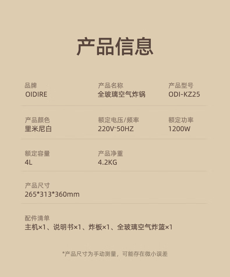 德国OIDIRE全玻璃空气炸锅4L ODI-KZ25