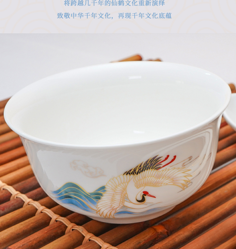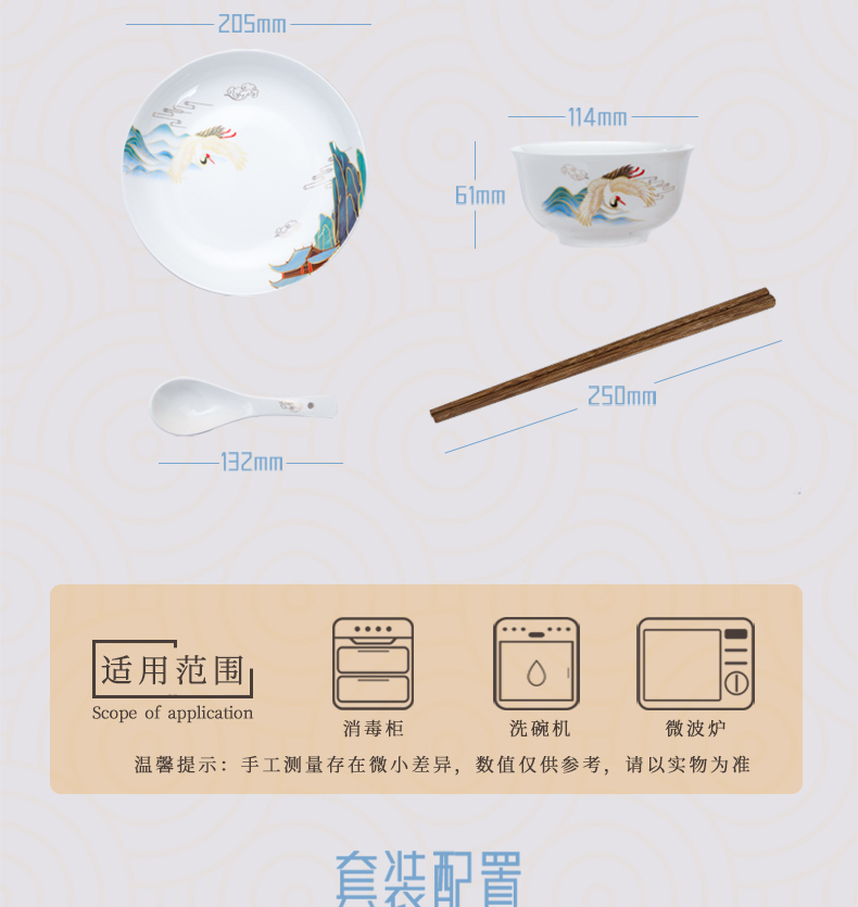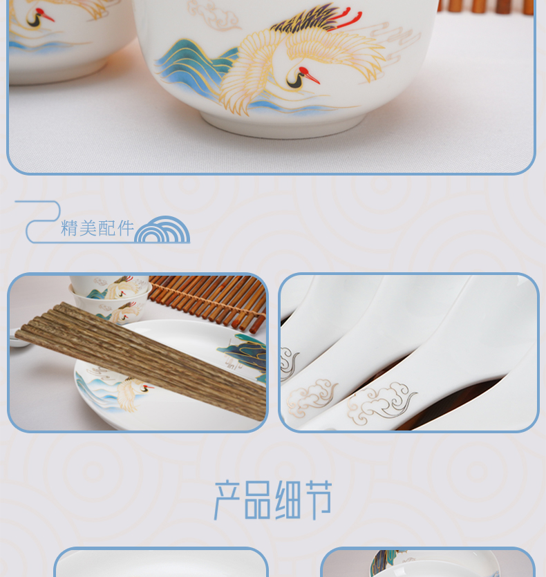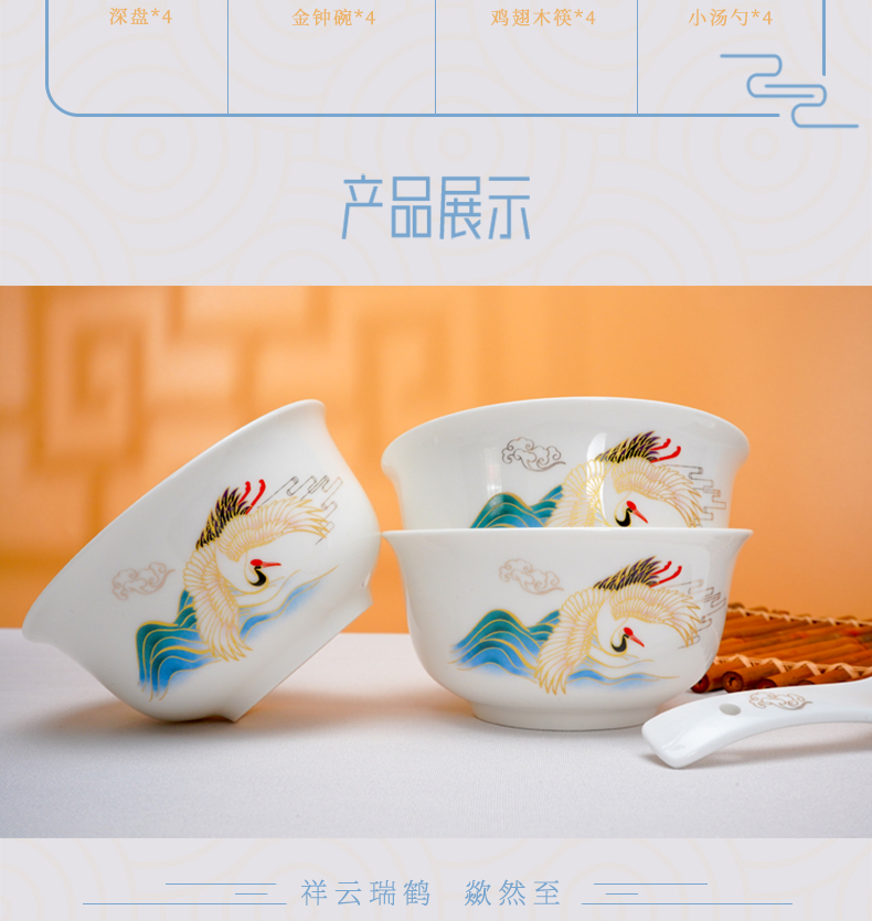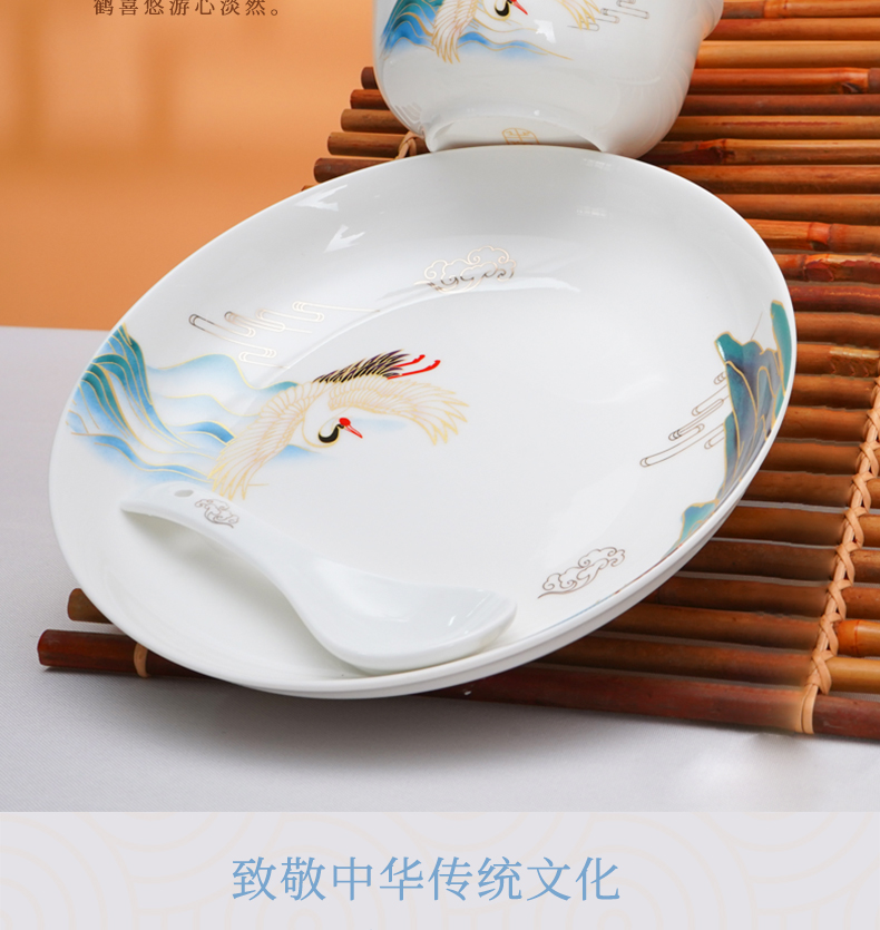 芈瓷瑞鹤餐具套装 中式陶瓷16件套 釉上彩碗碟组合MC-RH1609C