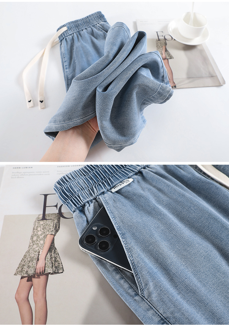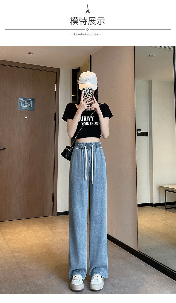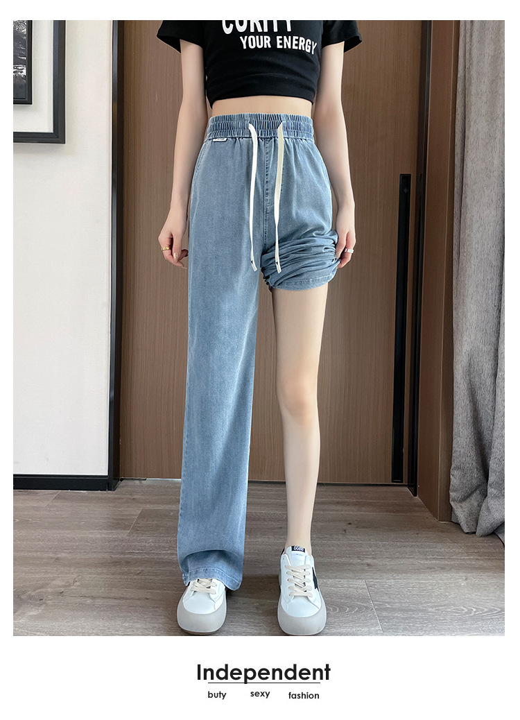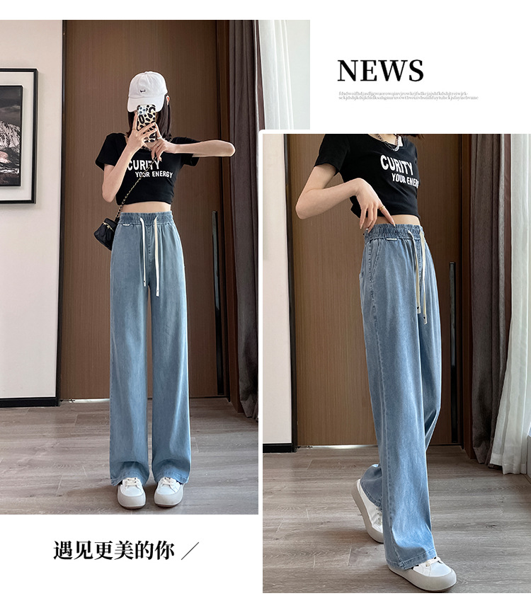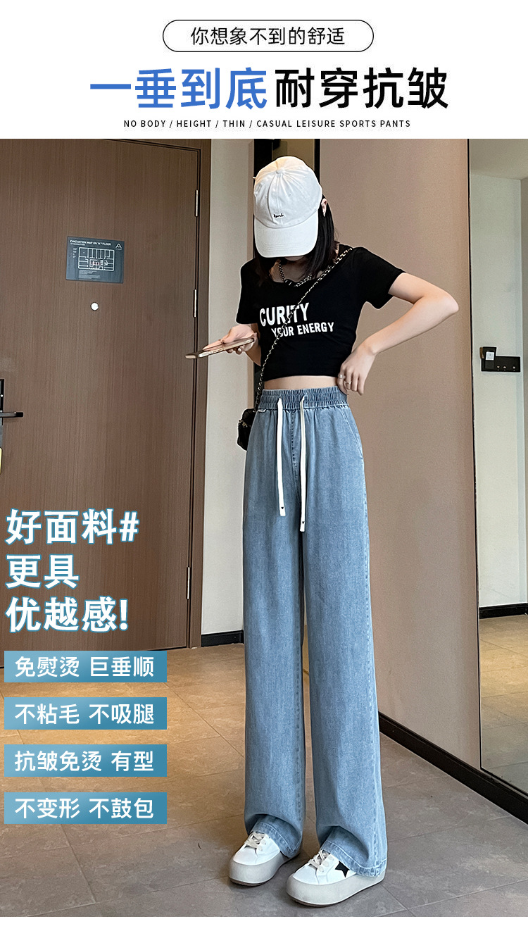 M251N3098K2 简约轻薄款天丝牛仔裤女长裤2024春夏季弹力系带松紧腰垂感阔腿裤