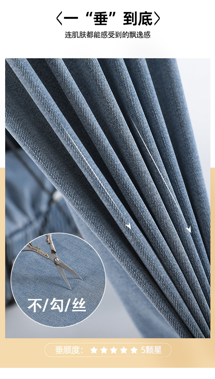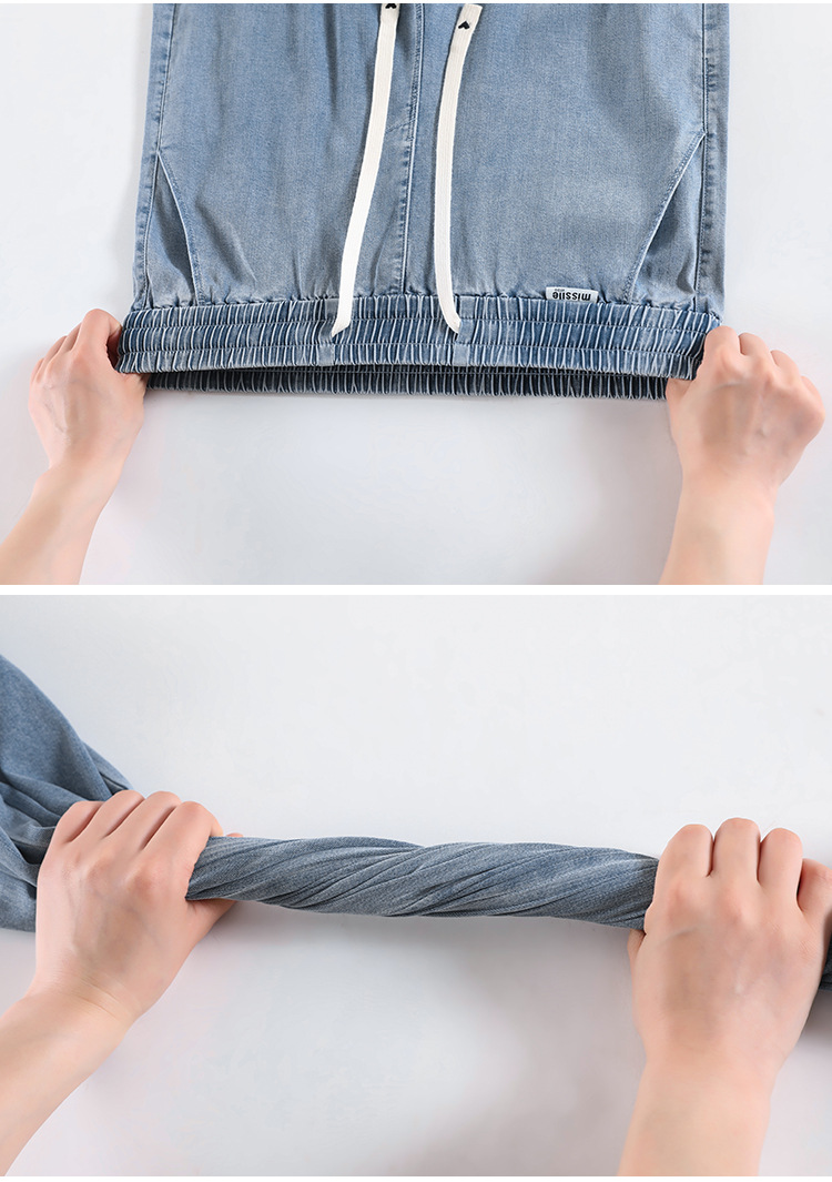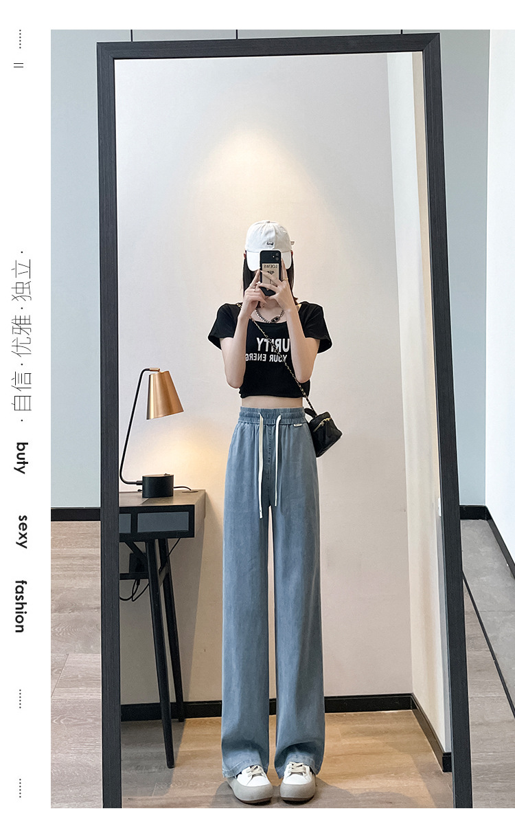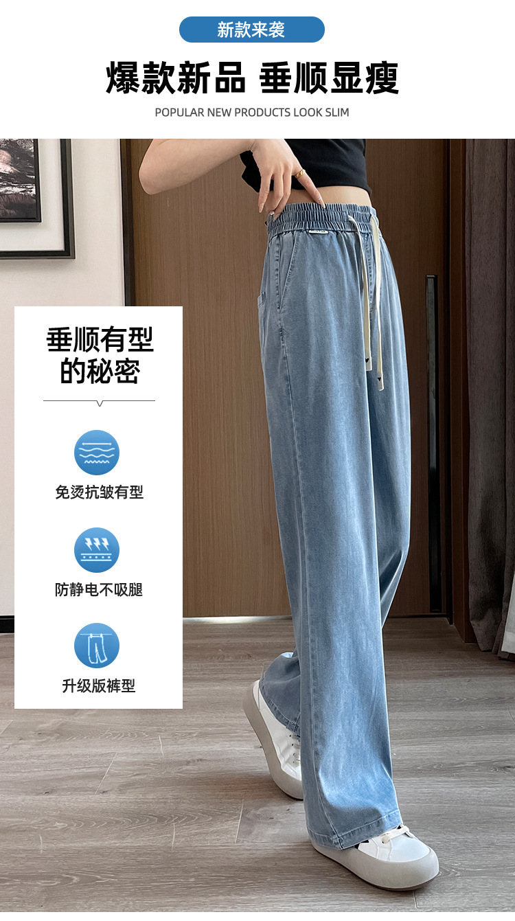 M251N3098K2 简约轻薄款天丝牛仔裤女长裤2024春夏季弹力系带松紧腰垂感阔腿裤