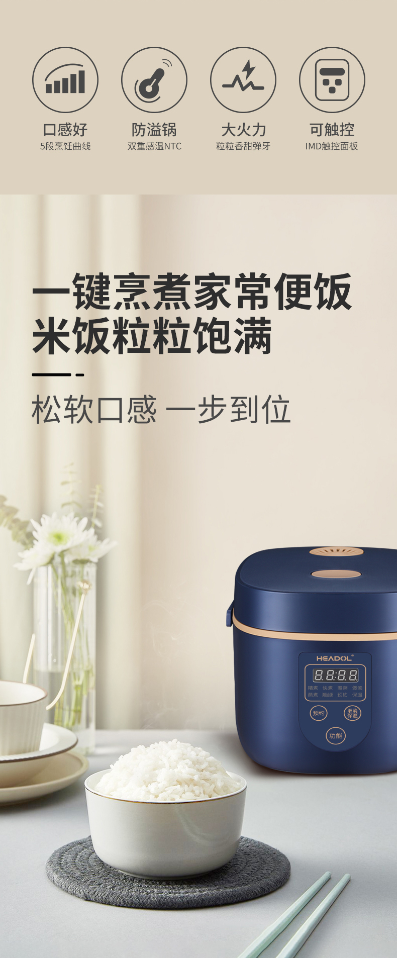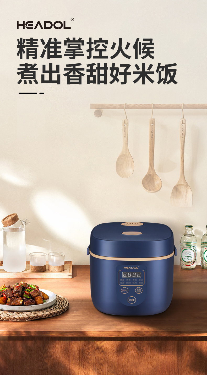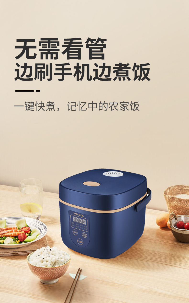 珩度HEADOL 智能双感温防溢电饭煲2L