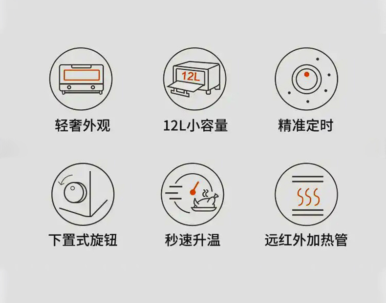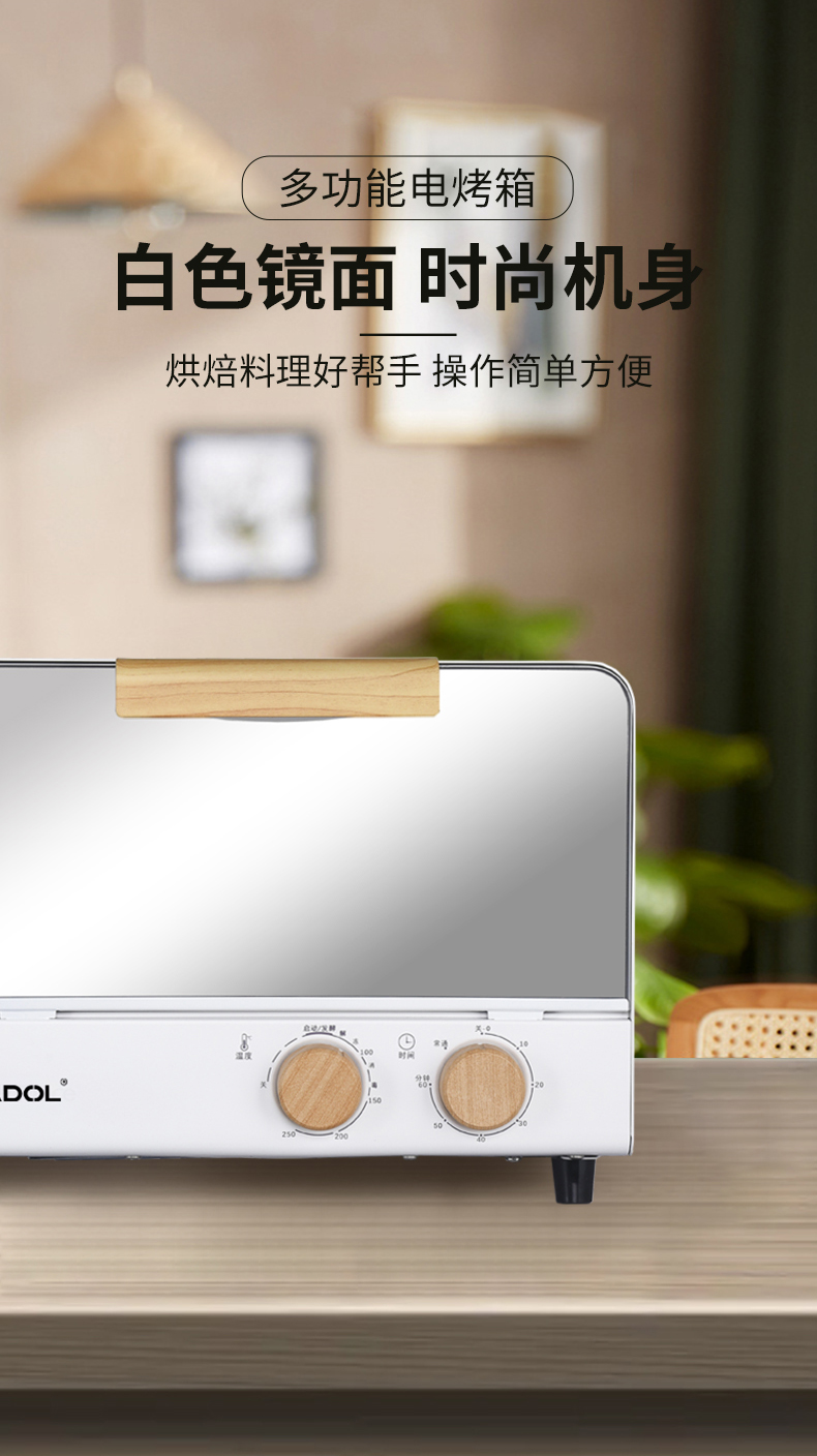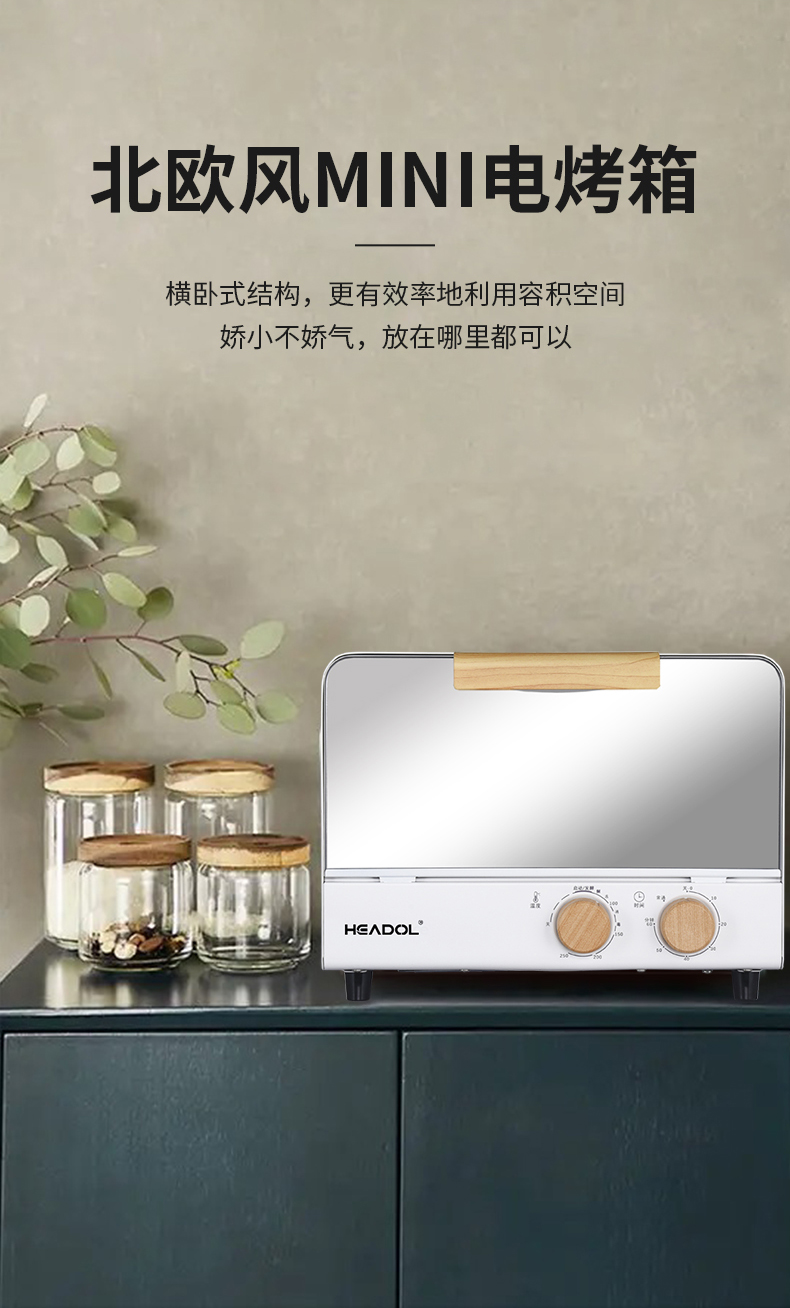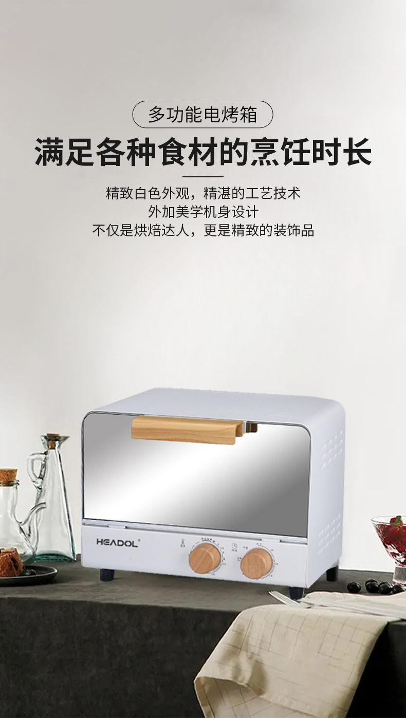 珩度HEADOL 轻奢木纹镜面电烤箱12L
