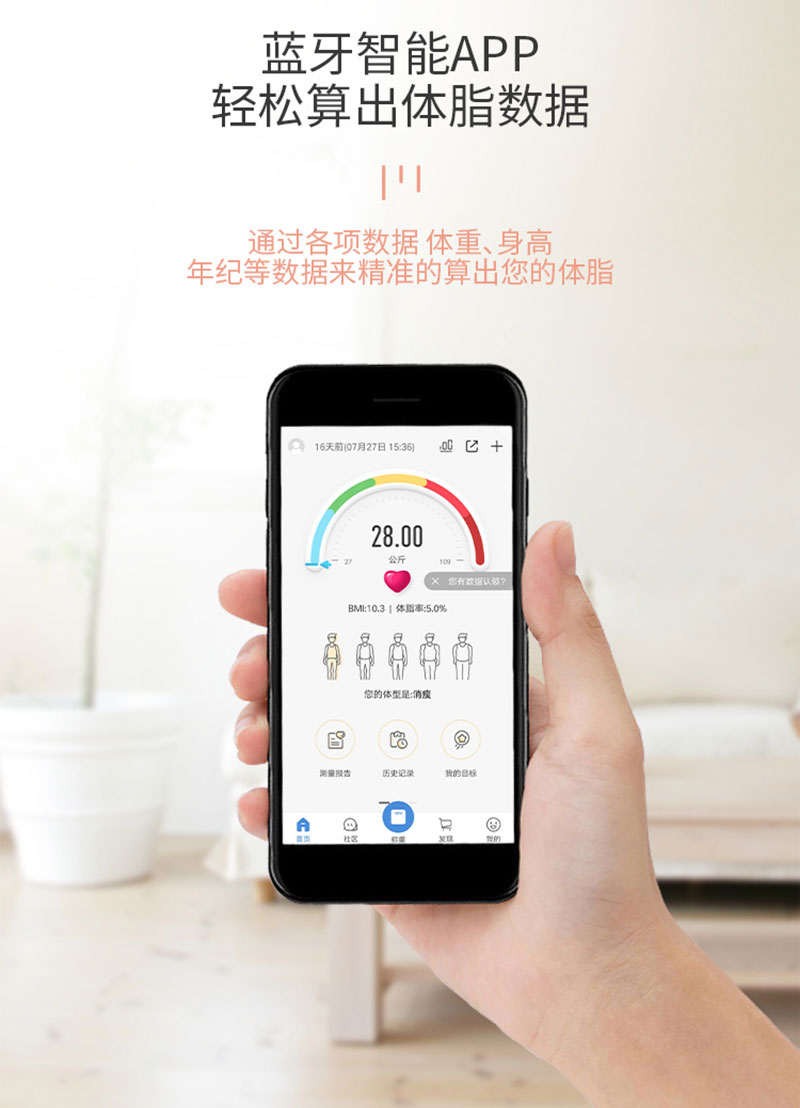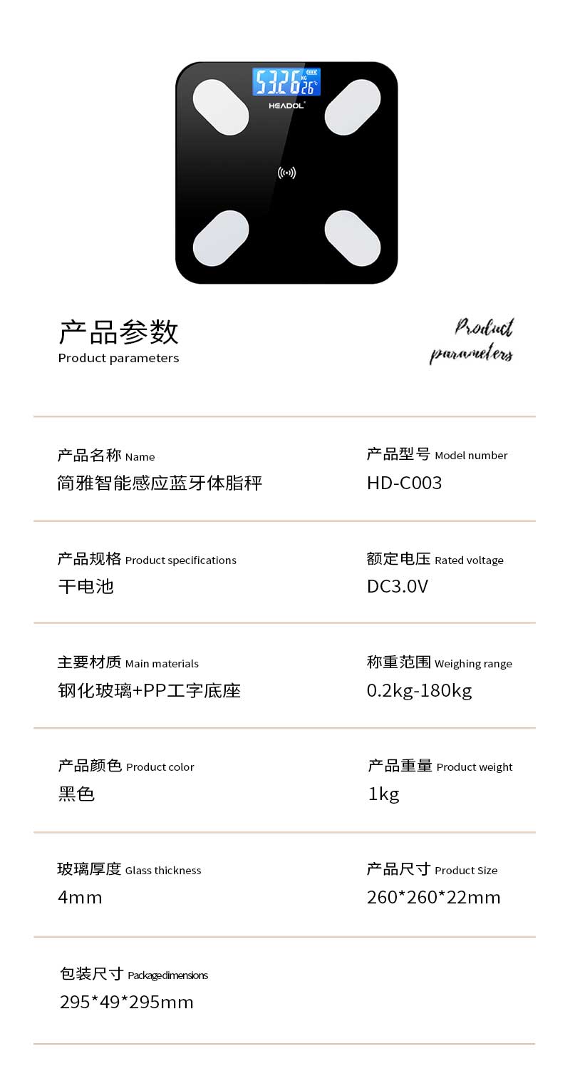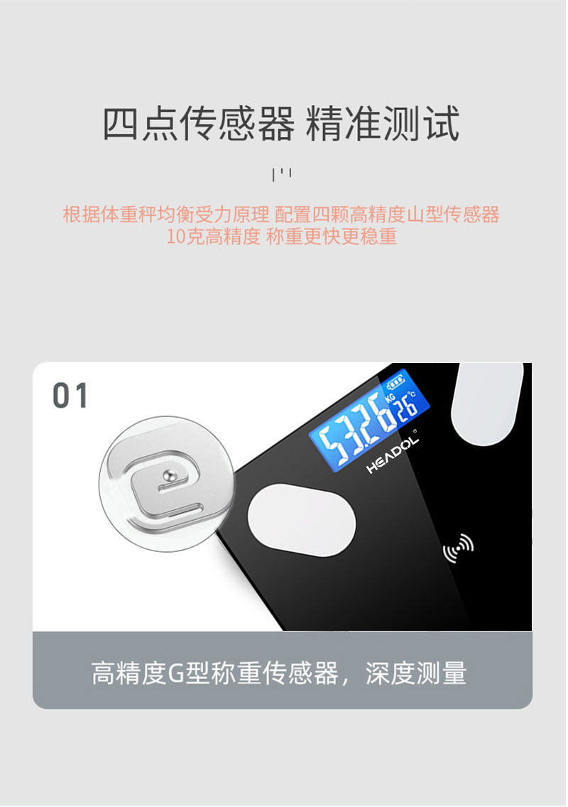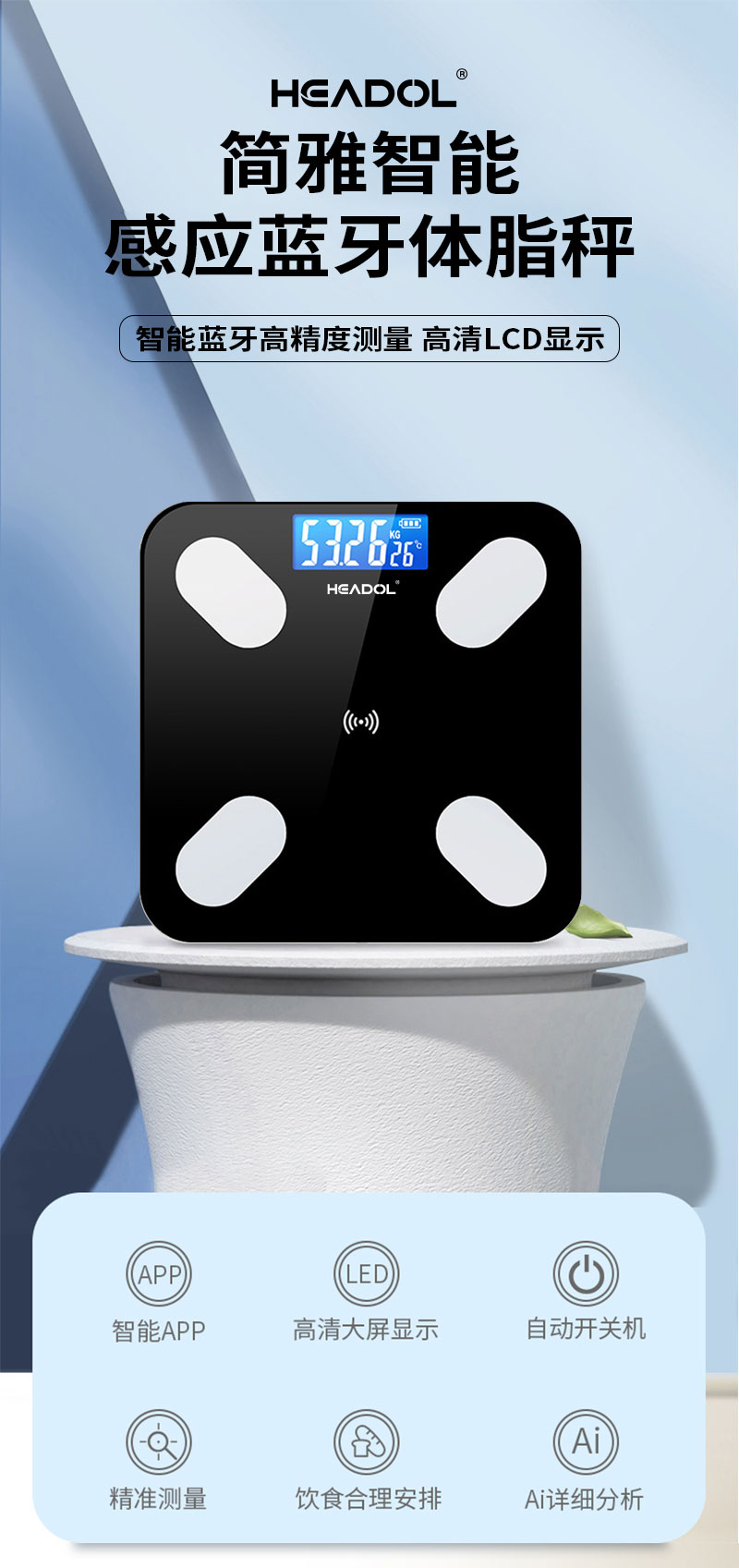 珩度HEADOL 简雅智能感应蓝牙体脂秤