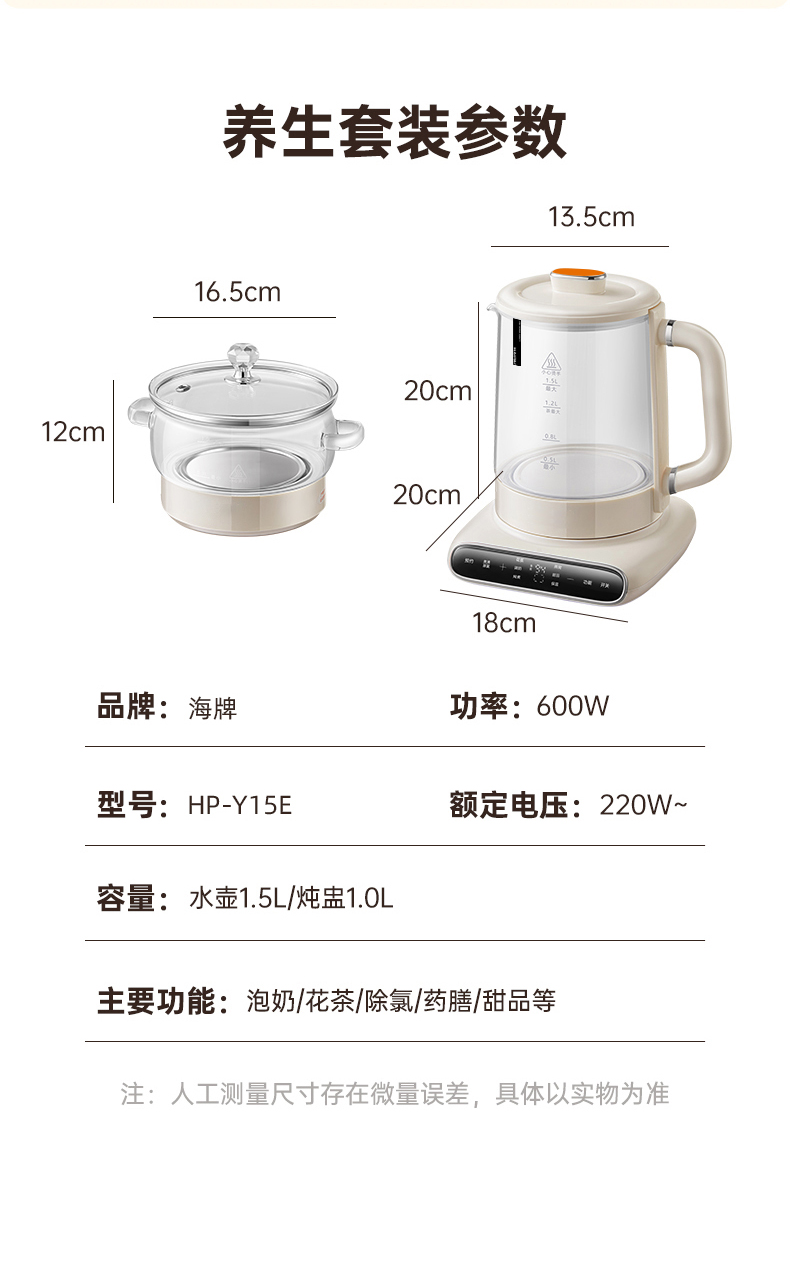 2、养生壶1.5L容量(带茶漏),炖盅1L容量