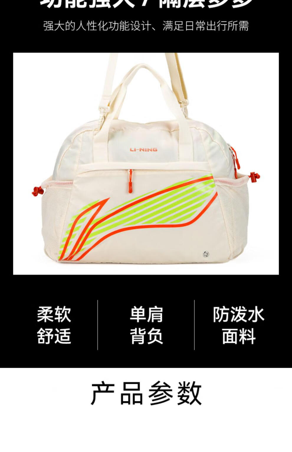 李宁(LI-NING)拎包女斜挎包新款手提包健身旅行休闲运动包大容量桶包单肩包 YBLU002-1
