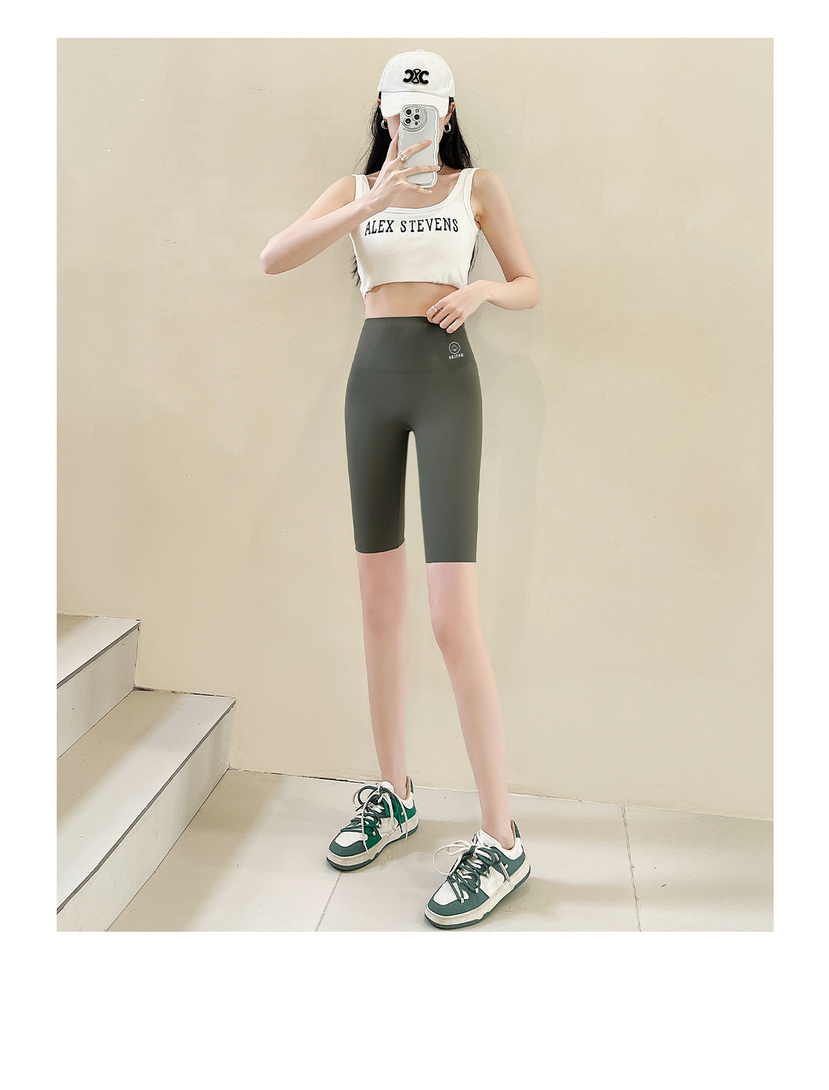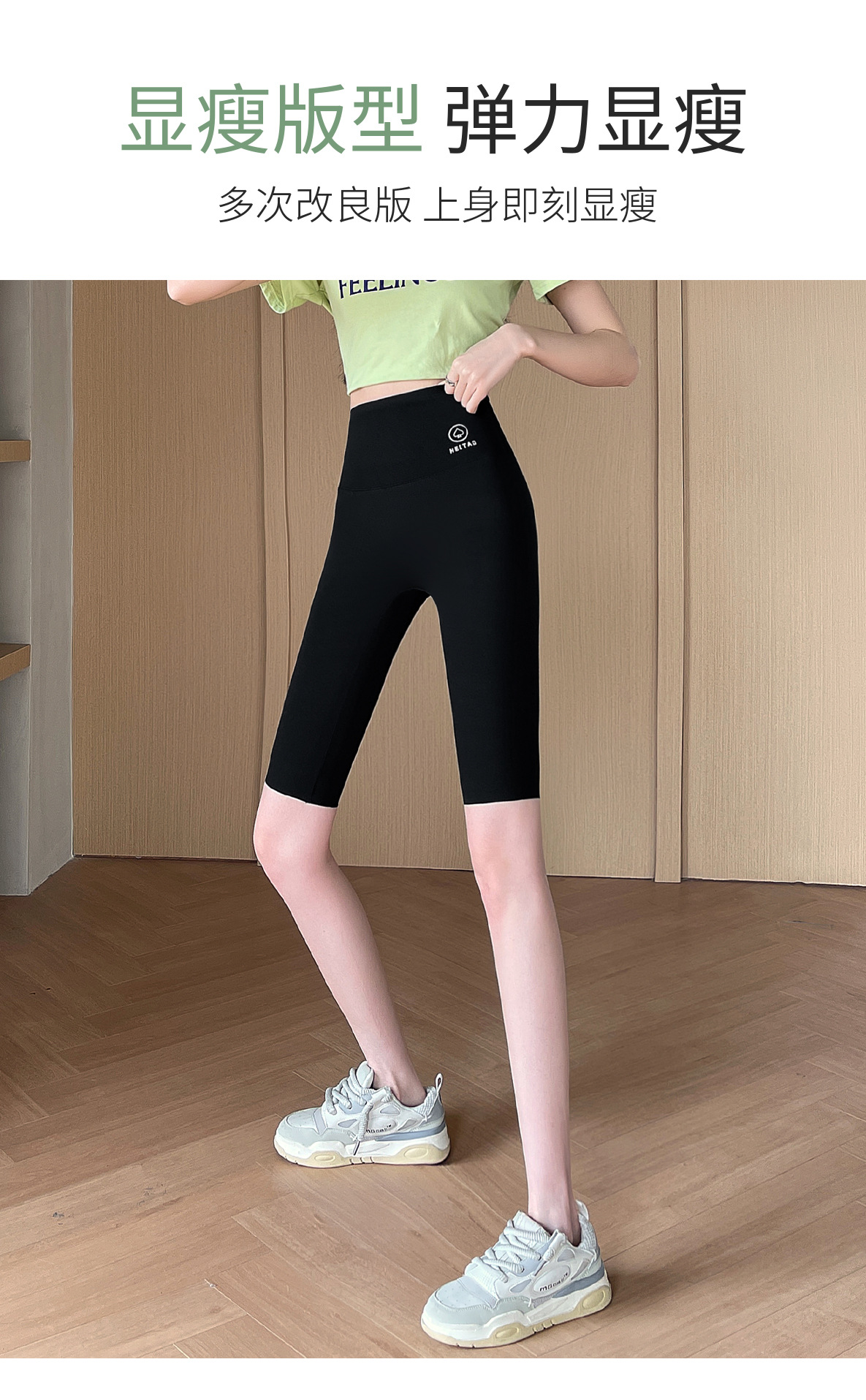 鲨鱼裤女五分黑桃无尴尬线夏季外穿薄款高腰托腹提臀紧身打底裤女 MX-5027