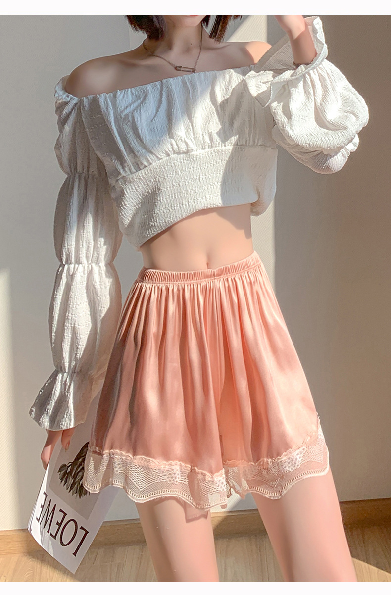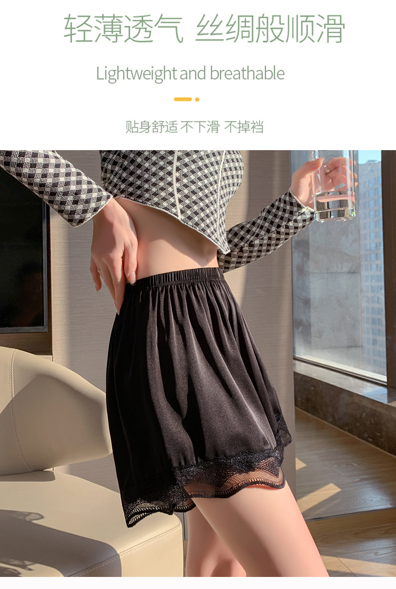 jk安全裤绸缎面料舒适蕾丝花边防走光夏季薄款宽松女士外穿打底裤 MX-3054