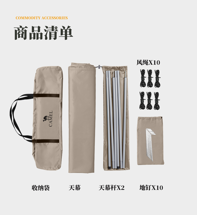 骆驼(CAMEL) 精致露营户外涂银天幕帐篷 133CA1T018,流沙金
