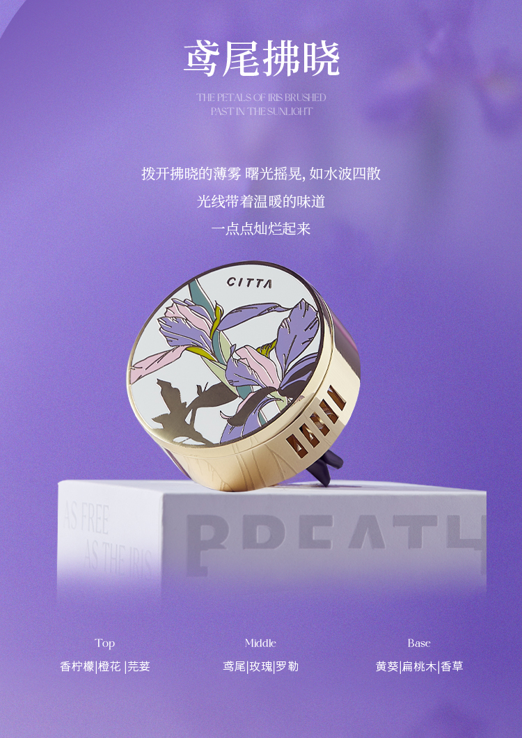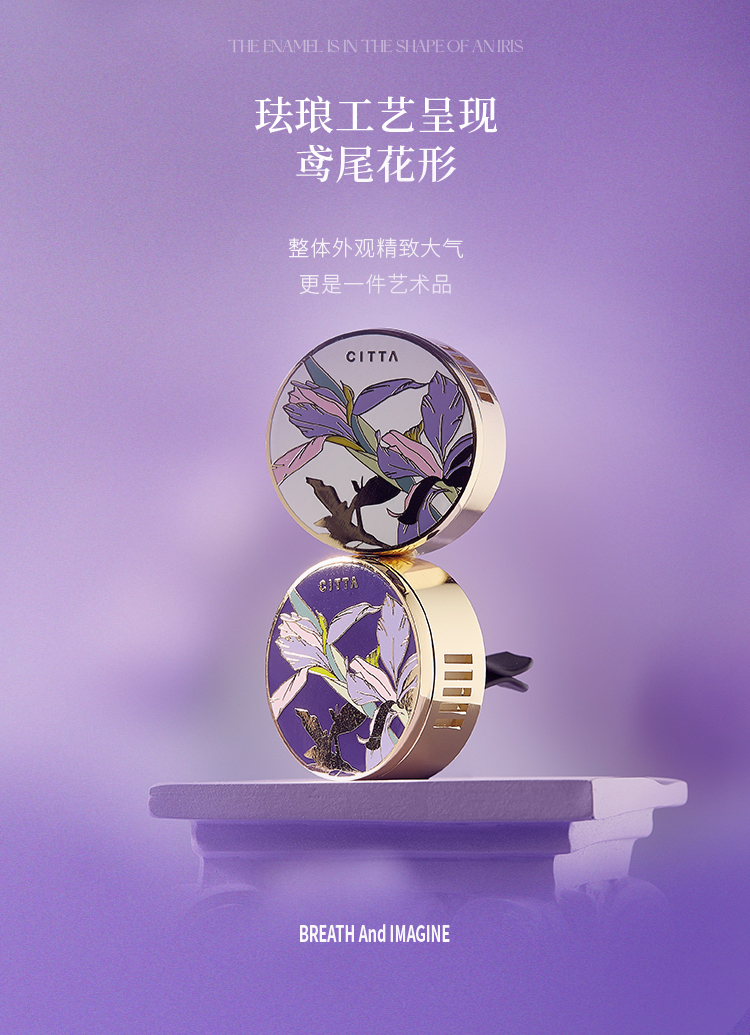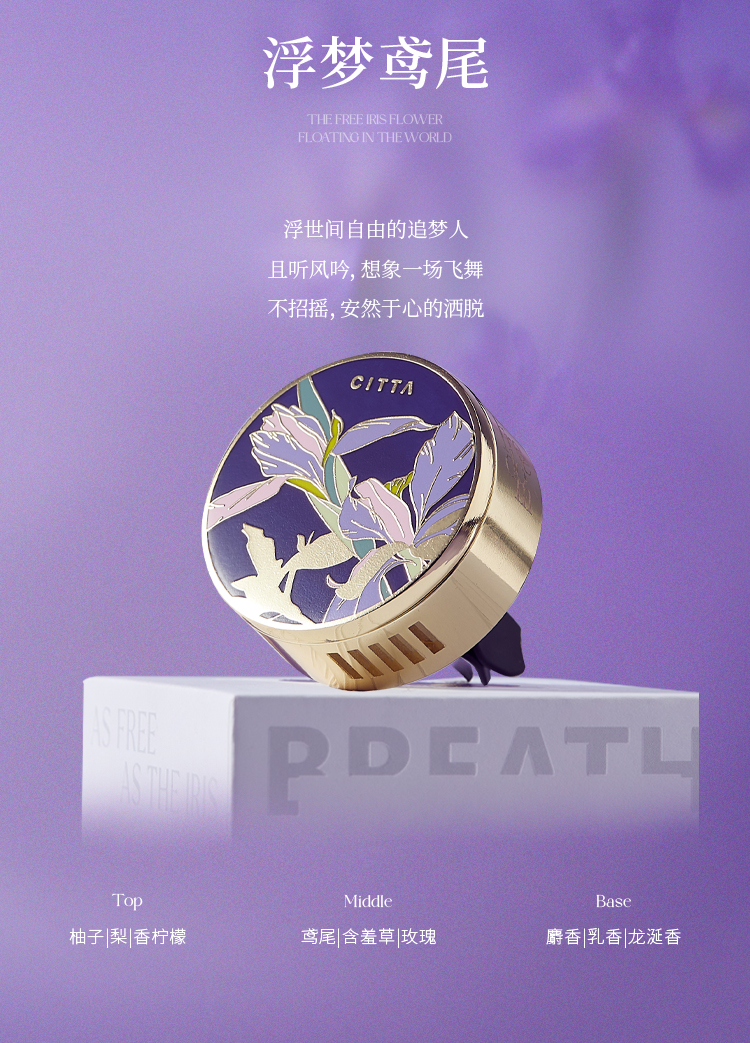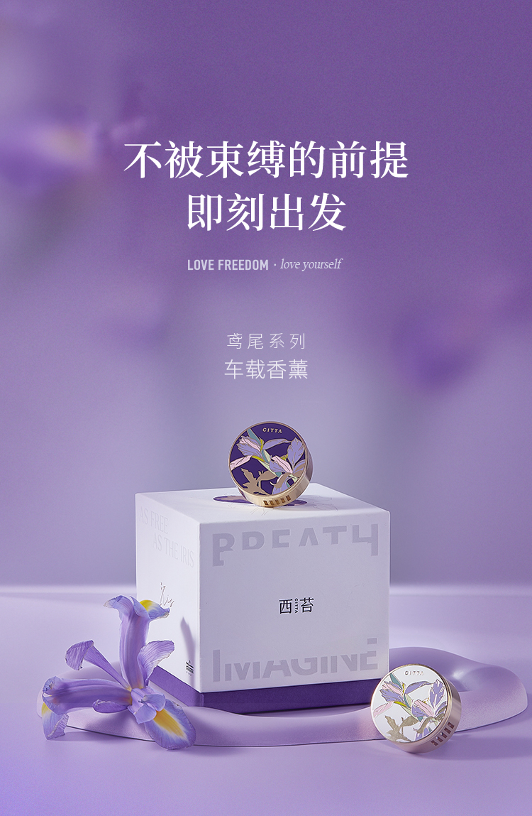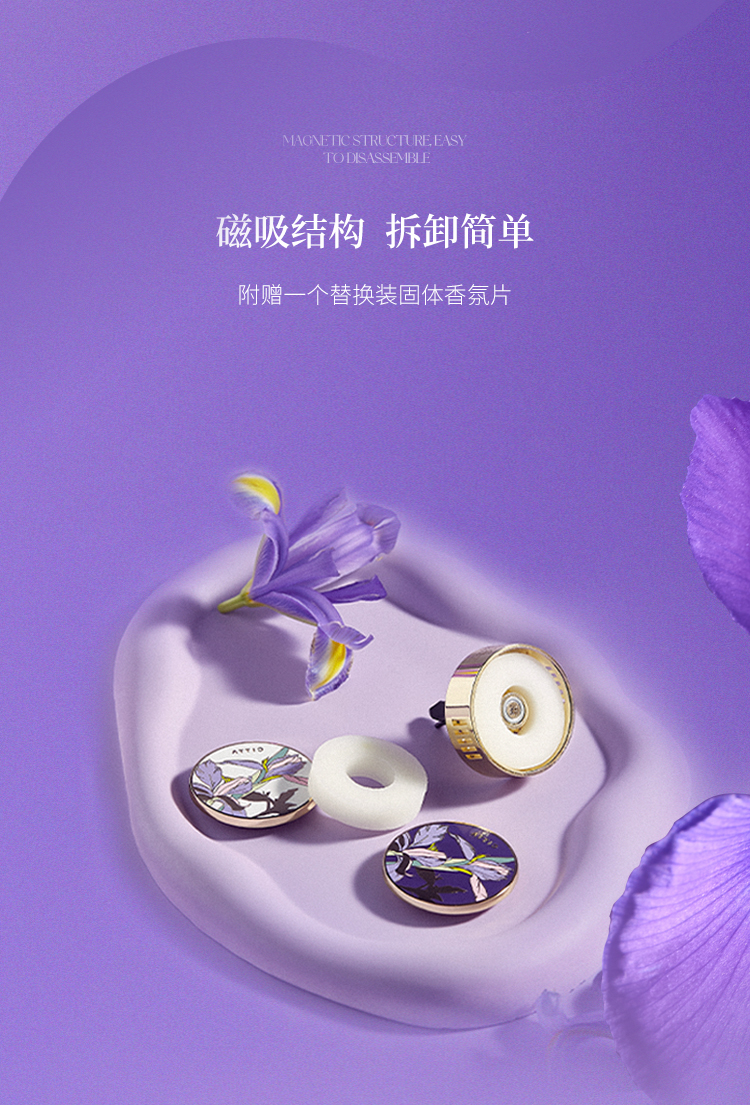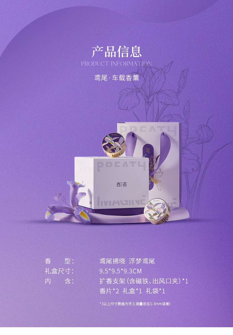 西苔 鸢尾系列车载香薰 带替换装 扩香支架(含磁铁、出风口夹)*1 香片*2 礼盒*1 礼袋*1
