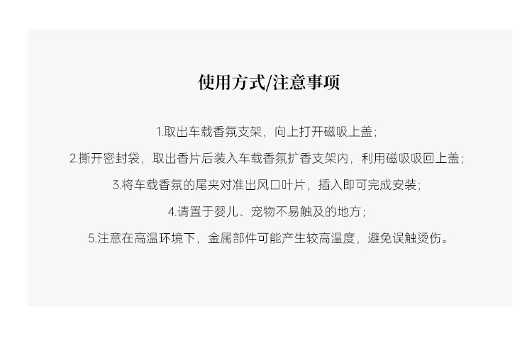 扩香支架(含磁铁、出风口夹)*1+香片*2+礼盒*1+礼袋*1