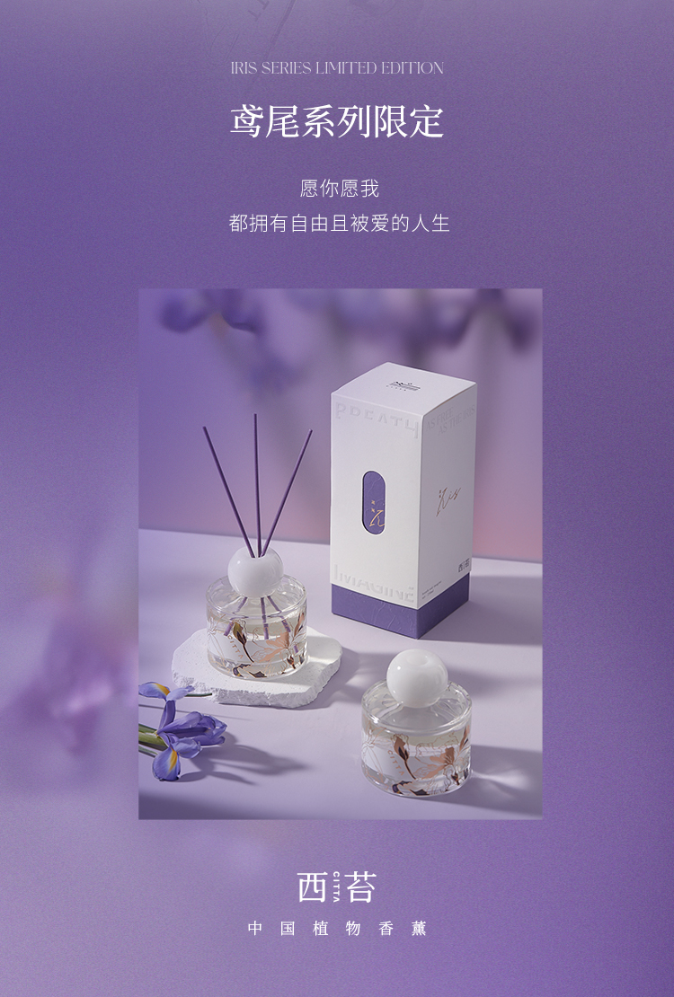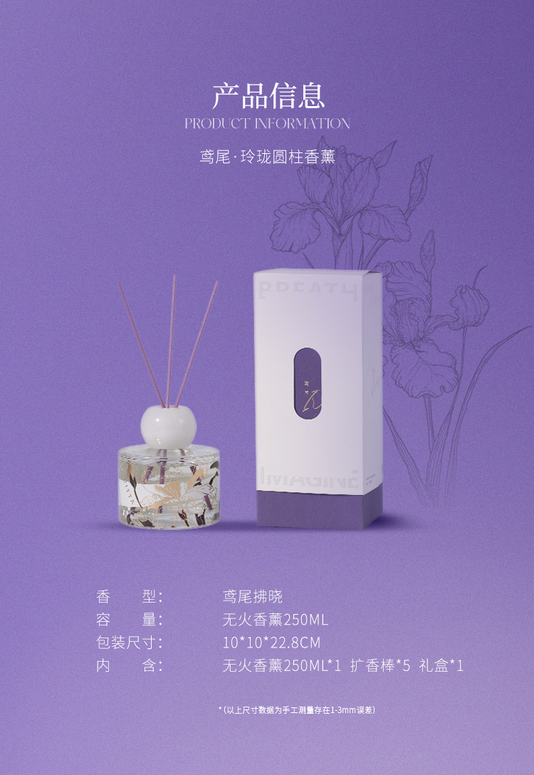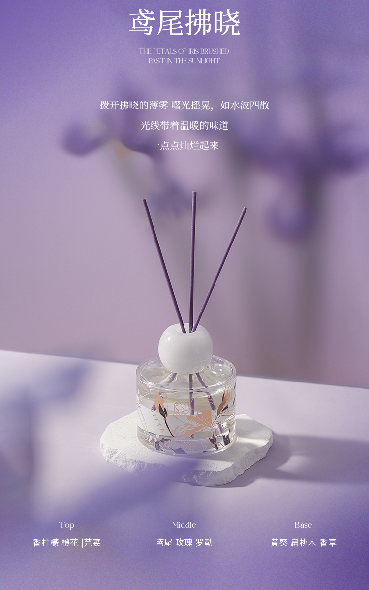 西苔 鸢尾·玲珑圆柱香薰 鸢尾拂晓藤条香薰250ml