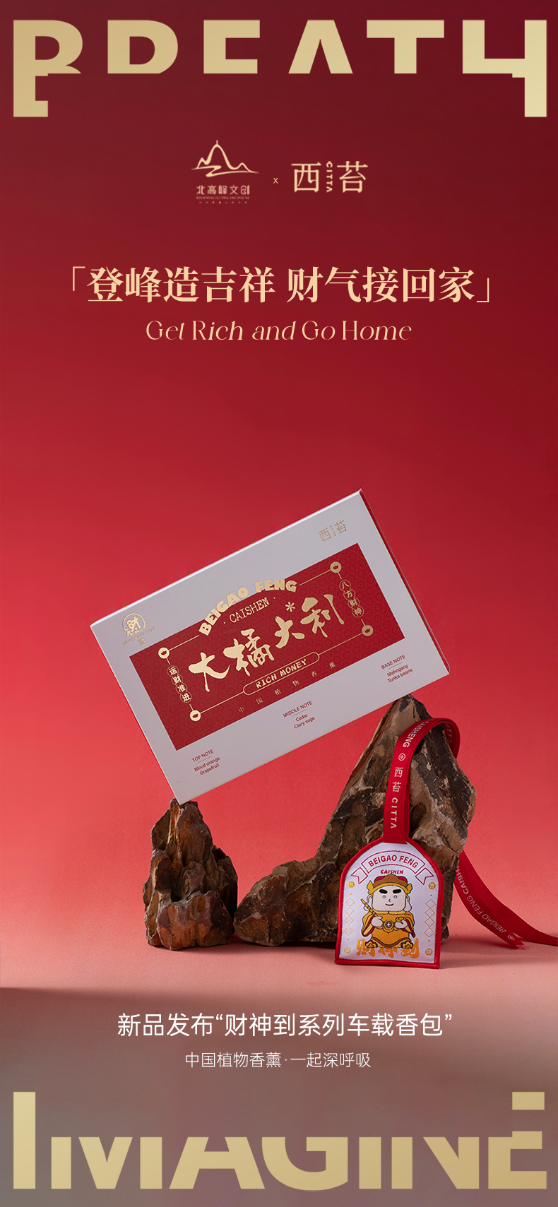 西苔 北高峰财神庙联名款财神到车载香包持久留香便携香包