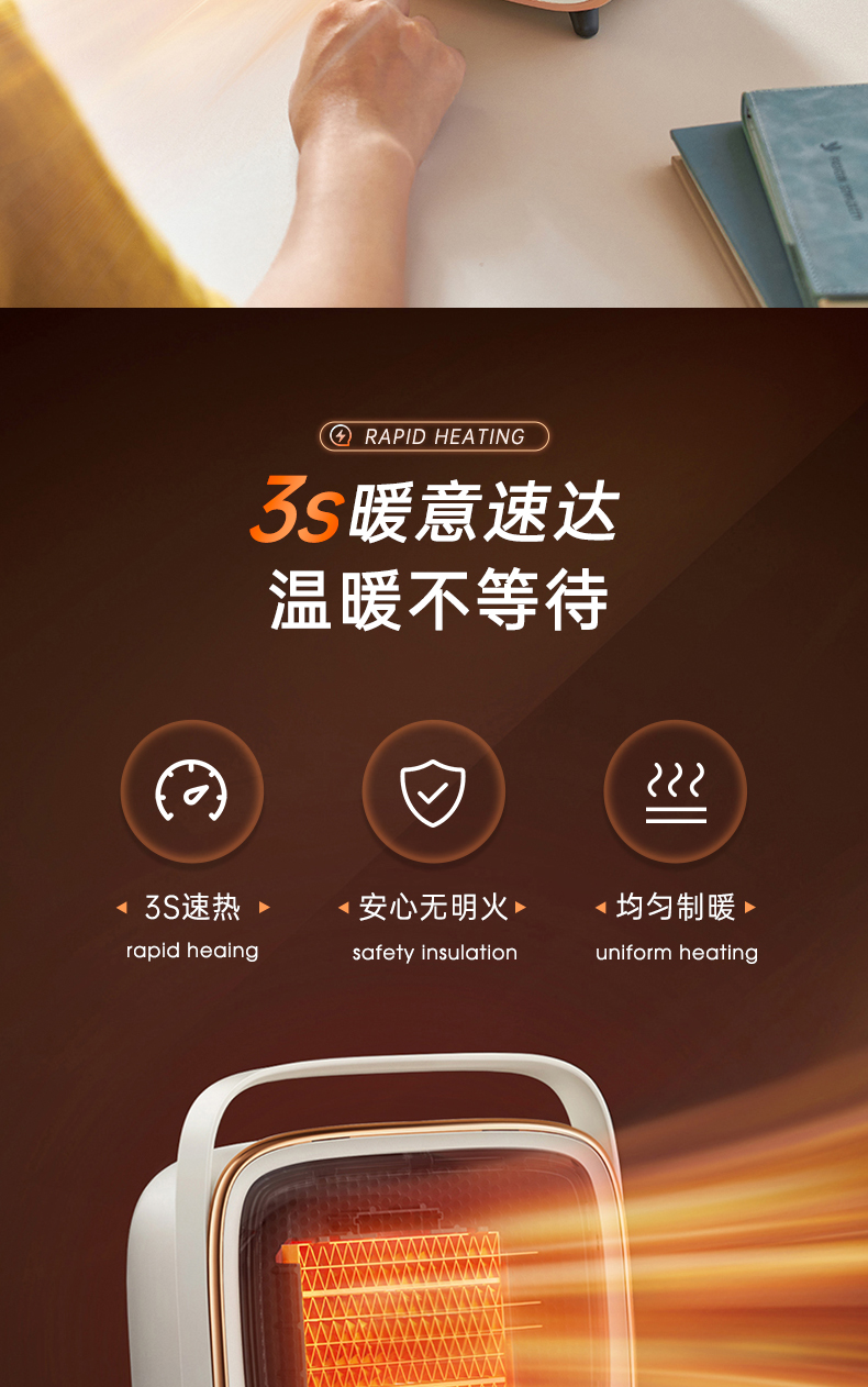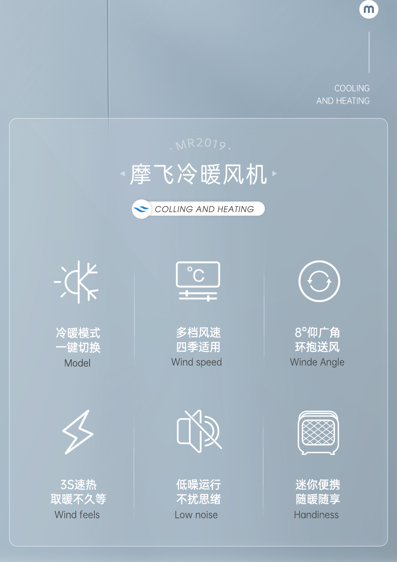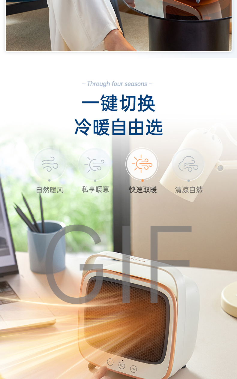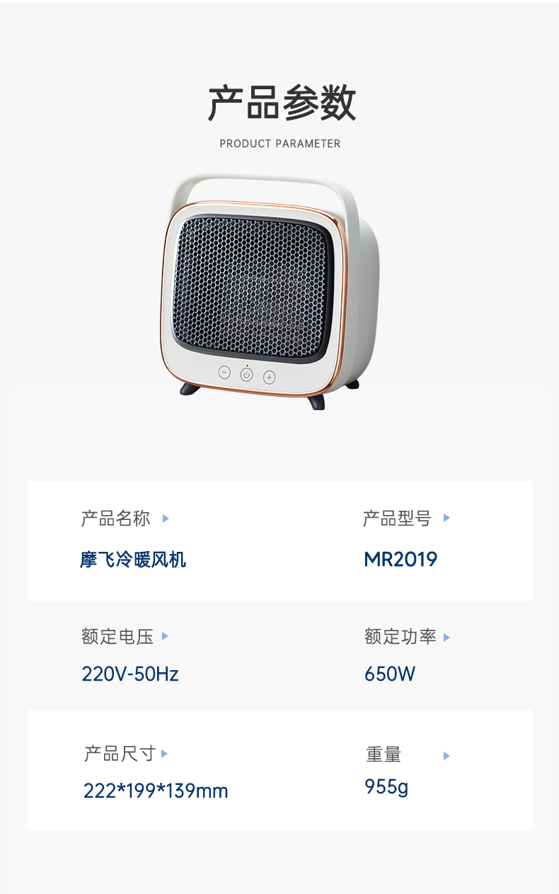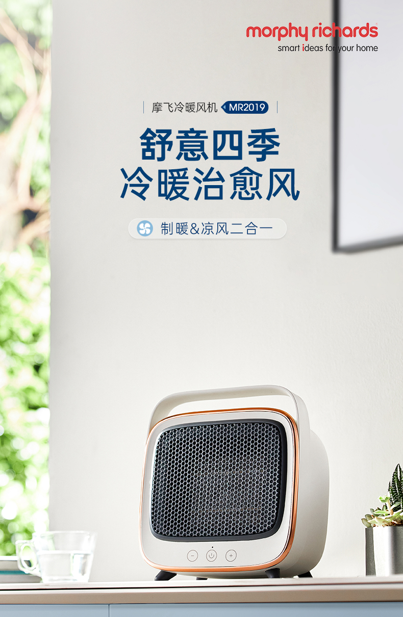 摩飞冷暖风机取暖器小太阳MR2019家用办公室宿舍小型桌面冷暖两用