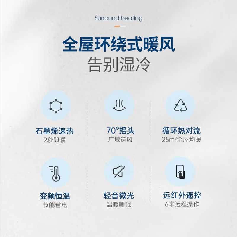 摩飞石墨烯速热取暖器家用节能浴室电暖气办公卧室非静音全屋暖风 MR2027取暖器