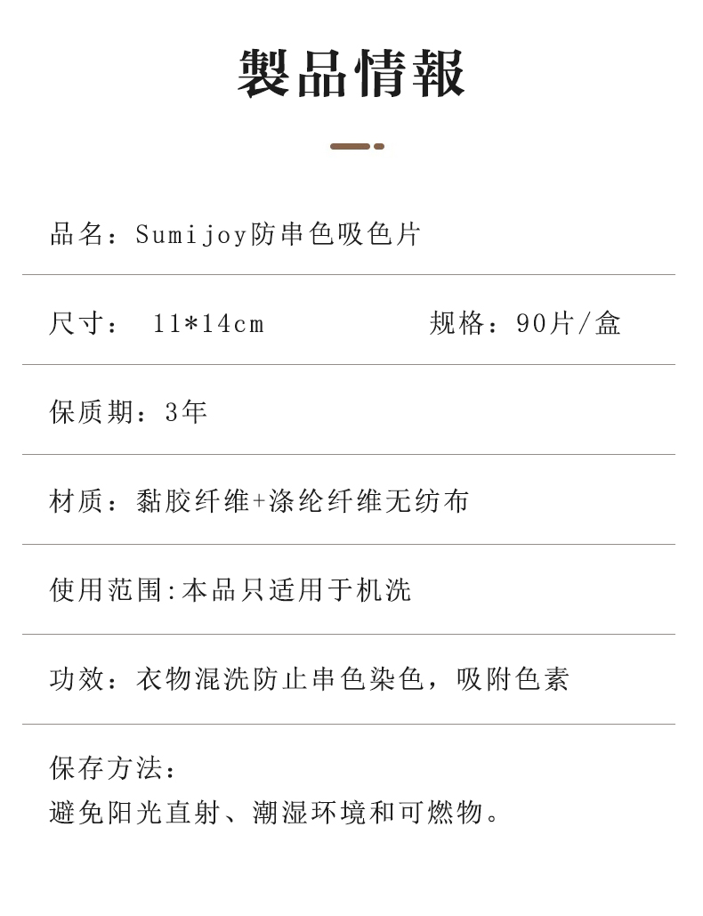 Sumijoy素美介防串色片洗衣机吸色片防串染衣物混洗护衣物3盒装