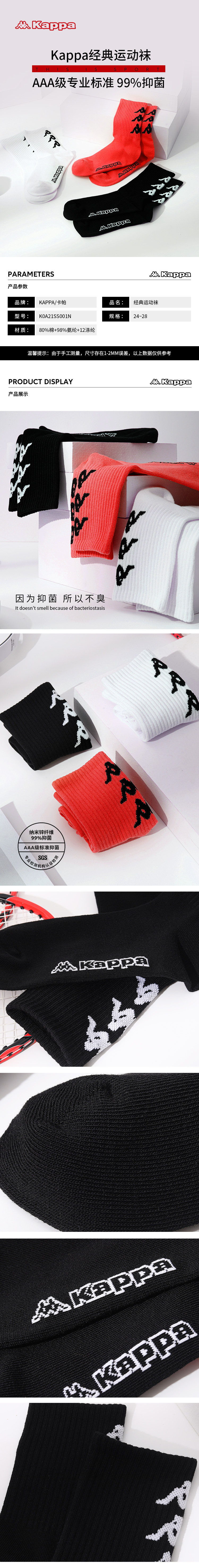 KAPPA/卡帕经典运动袜-三双装K0BZ8WG02L