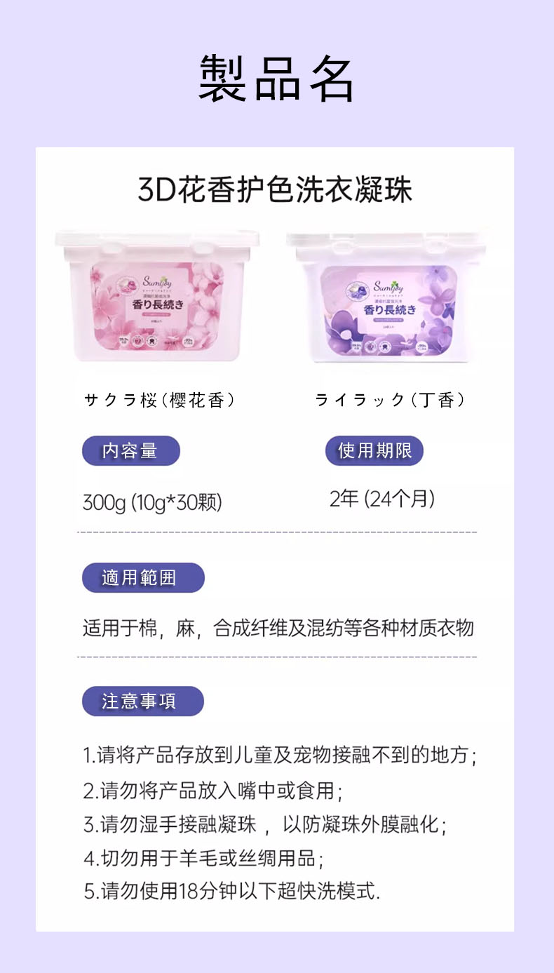 Sumijoy素美介洗衣凝珠留香珠三合一30颗 丁香花香浓缩留香持久除螨抑菌