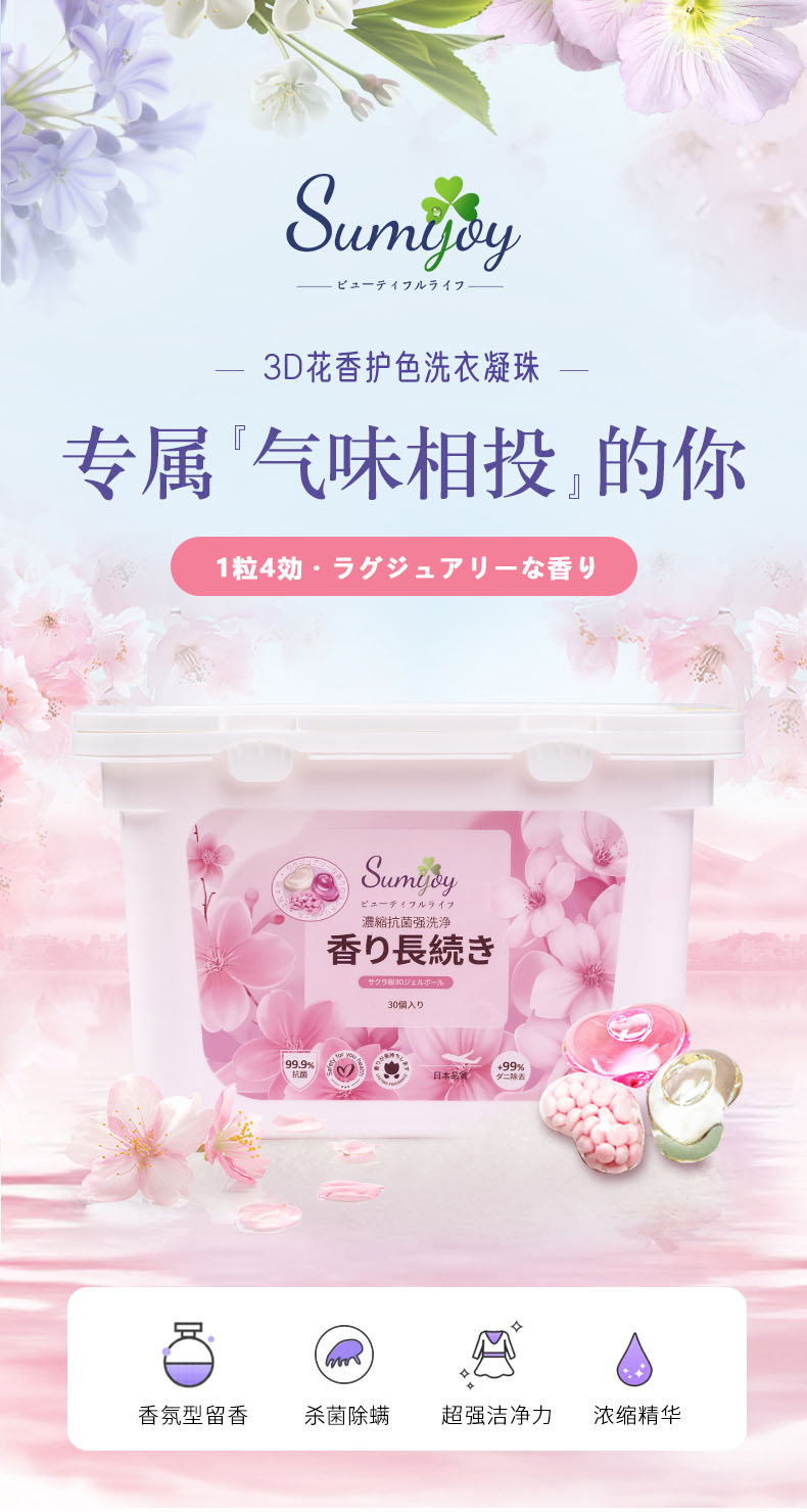 Sumijoy素美介洗衣凝珠留香珠三合一浓缩留香持久除螨抑菌30颗